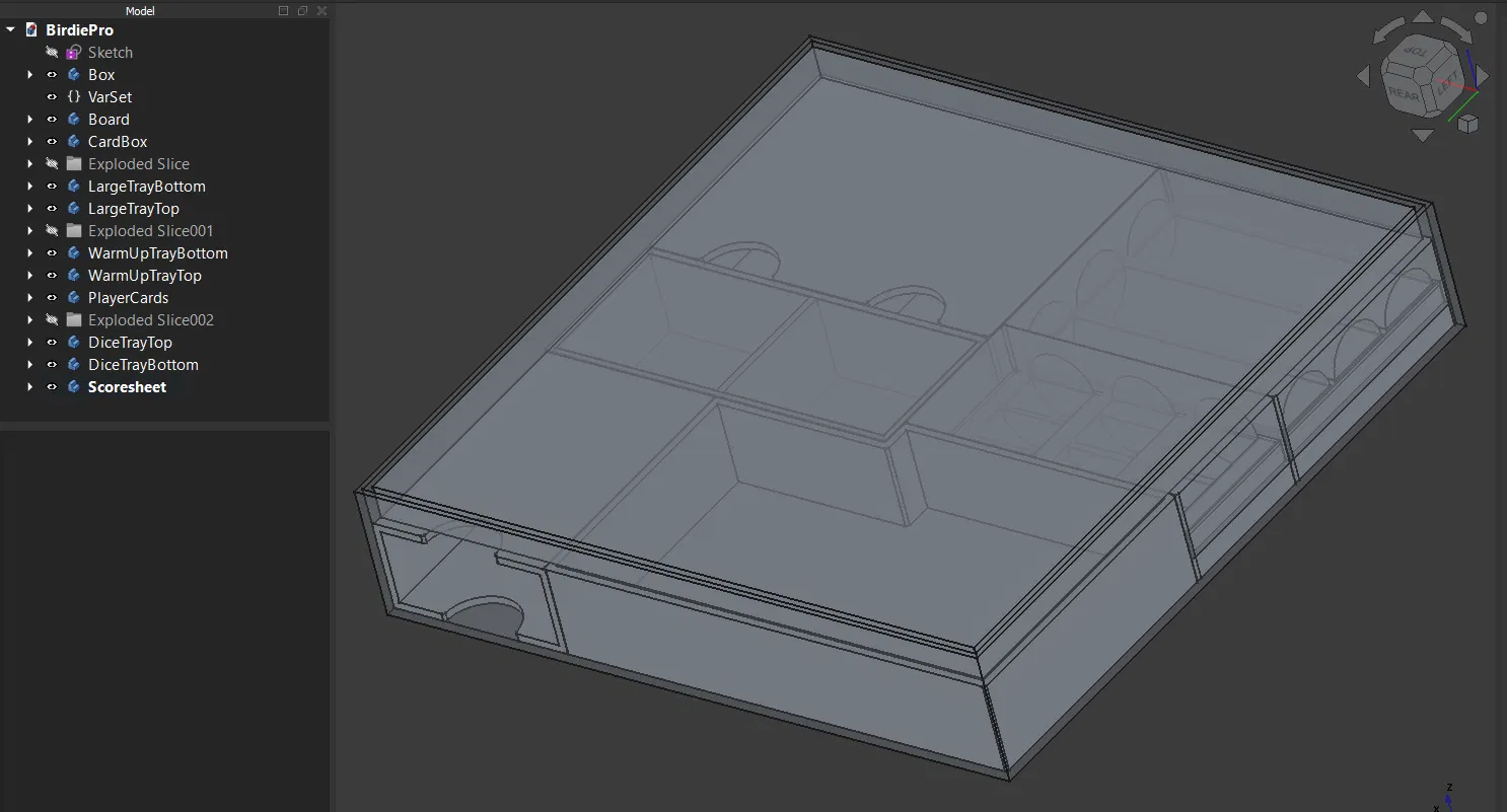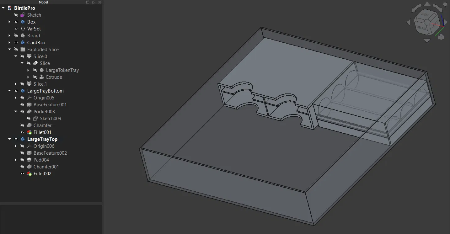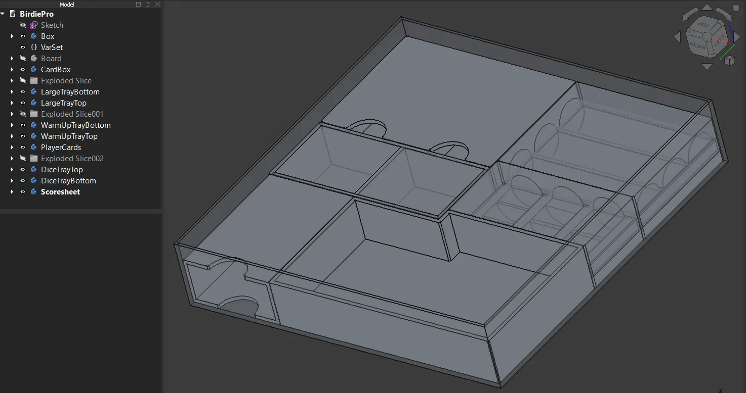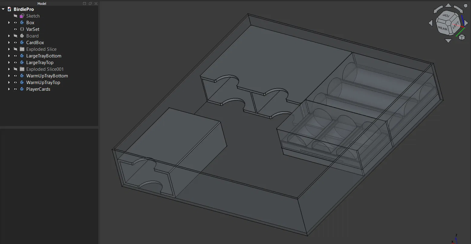 Insert cho board game Birdie Pro, thiết kế để in không cần support. Tác giả chưa thử với cards có bọc sleeve, nhưng dự kiến vẫn còn nhiều khoảng trống để chứa bài và phụ kiện.