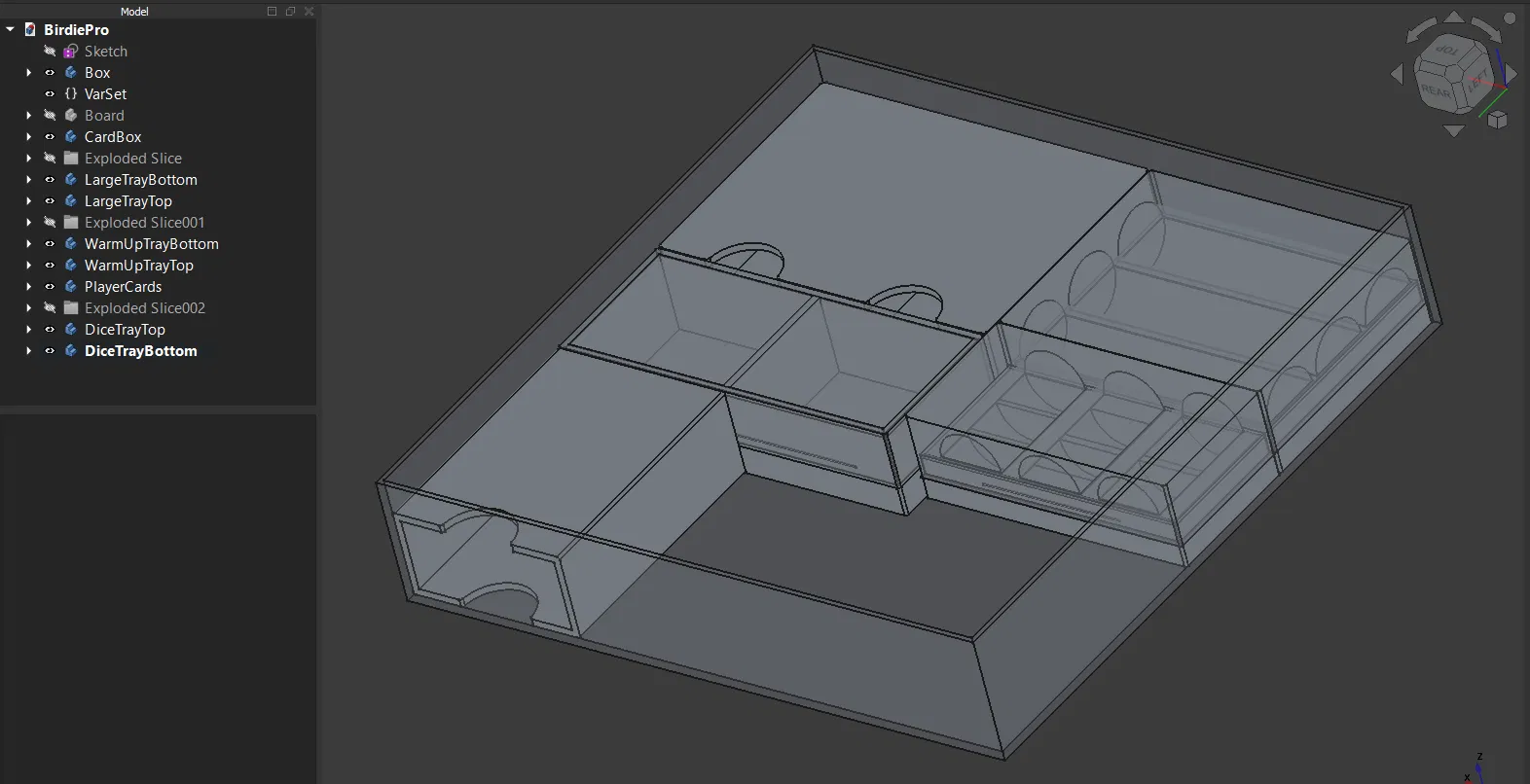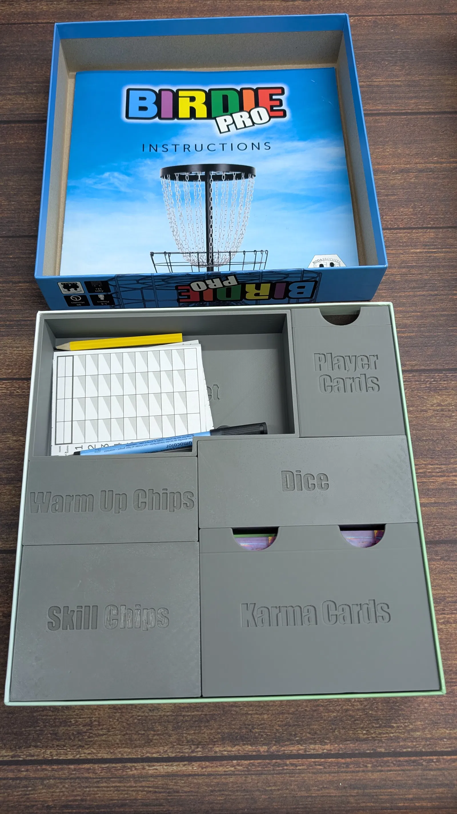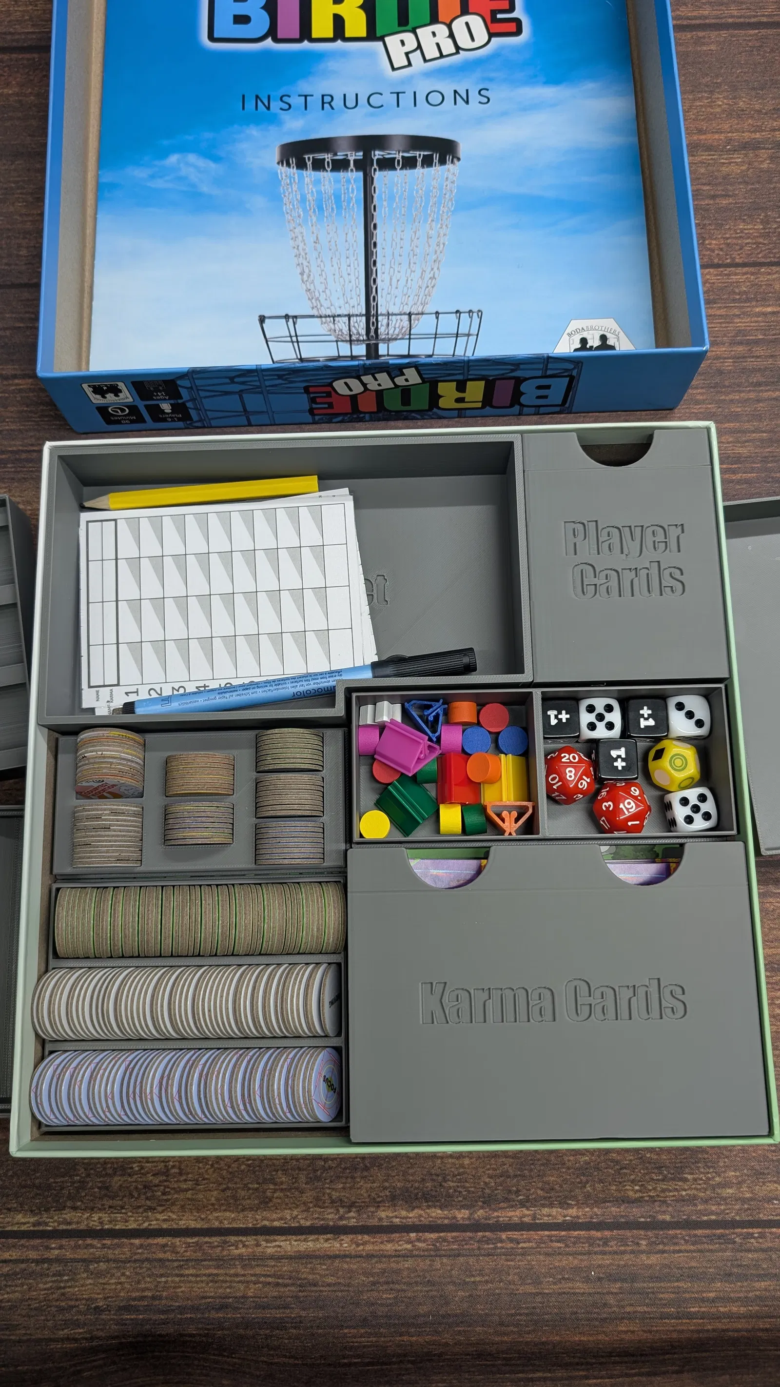 Insert cho board game Birdie Pro, thiết kế để in không cần support. Tác giả chưa thử với cards có bọc sleeve, nhưng dự kiến vẫn còn nhiều khoảng trống để chứa bài và phụ kiện.