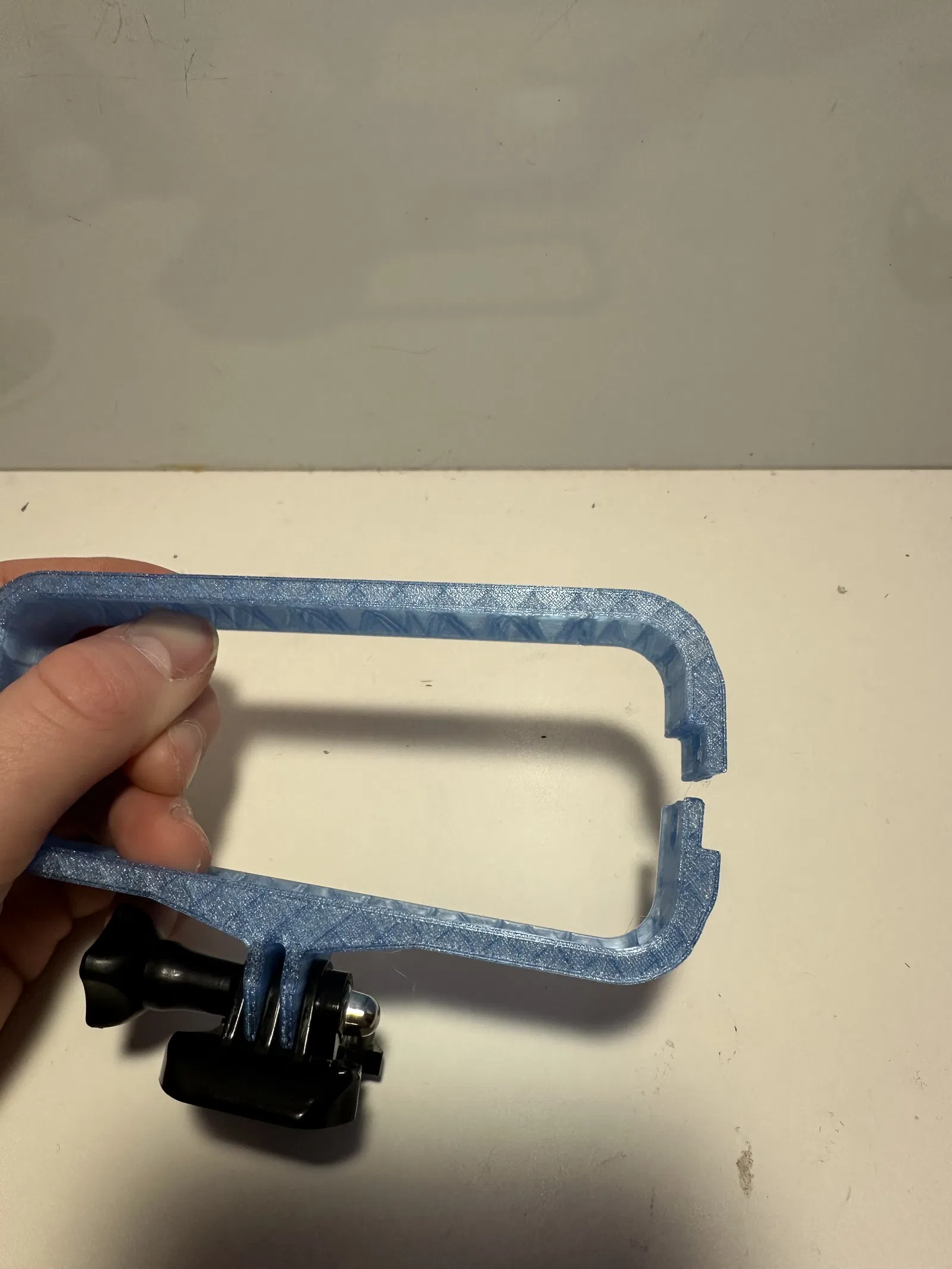 Mẫu ngàm gắn ngang cho Insta 360 X4 có thể in 3D. Cần chuẩn bị một con ốc/vít ren 1/4 inch phù hợp để siết và giữ camera cố định chắc chắn khi sử dụng.