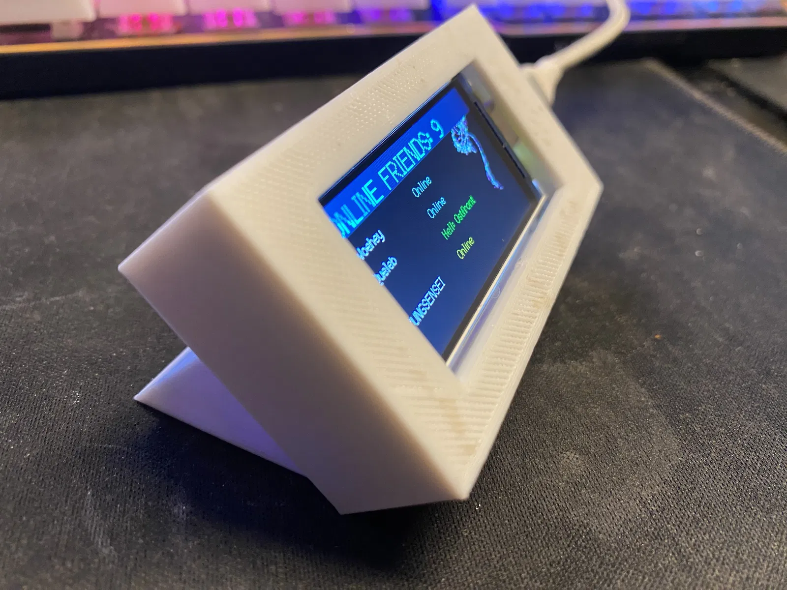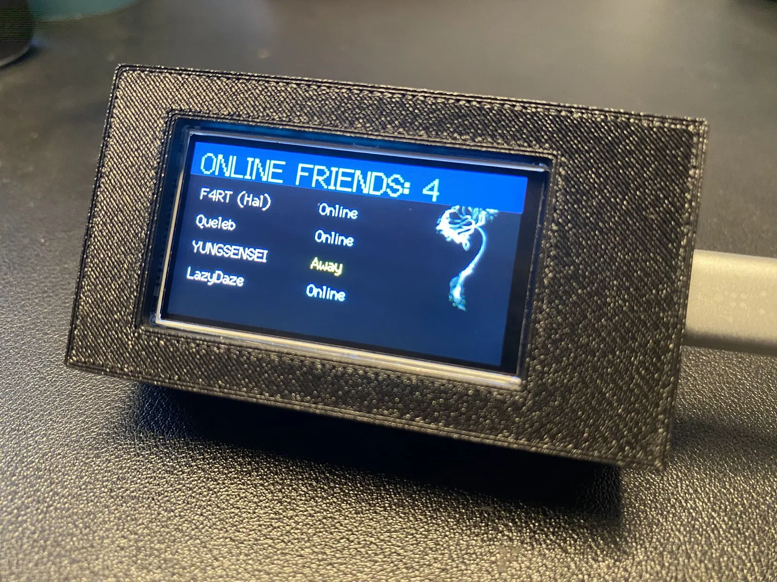 Steam Friends Desktop Tracker là một màn hình desktop chạy bằng ESP32, hiển thị trạng thái online và game đang chơi của bạn bè Steam theo thời gian thực ngay trên màn hình màu 1.9″ tích hợp.