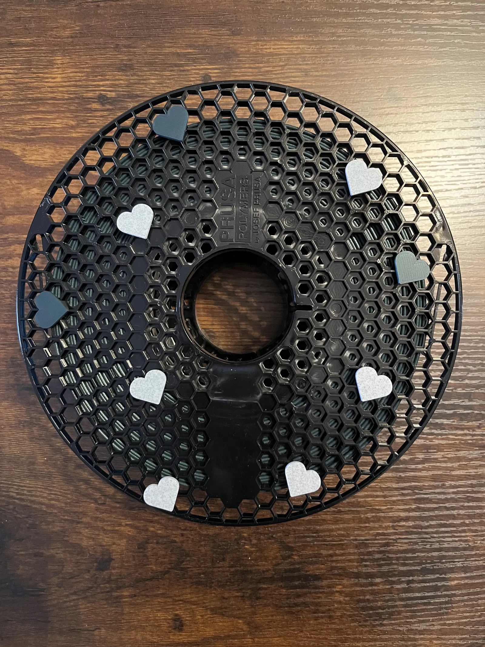 Bộ trái tim mini để trang trí cuộn filament, thiết kế press fit vào khe lục giác kiểu Prusa. Dễ scale để vừa nhiều loại slot, in nhanh, không cần supports. Cũng rất tiện để test màu filament và phối màu theo ý thích.