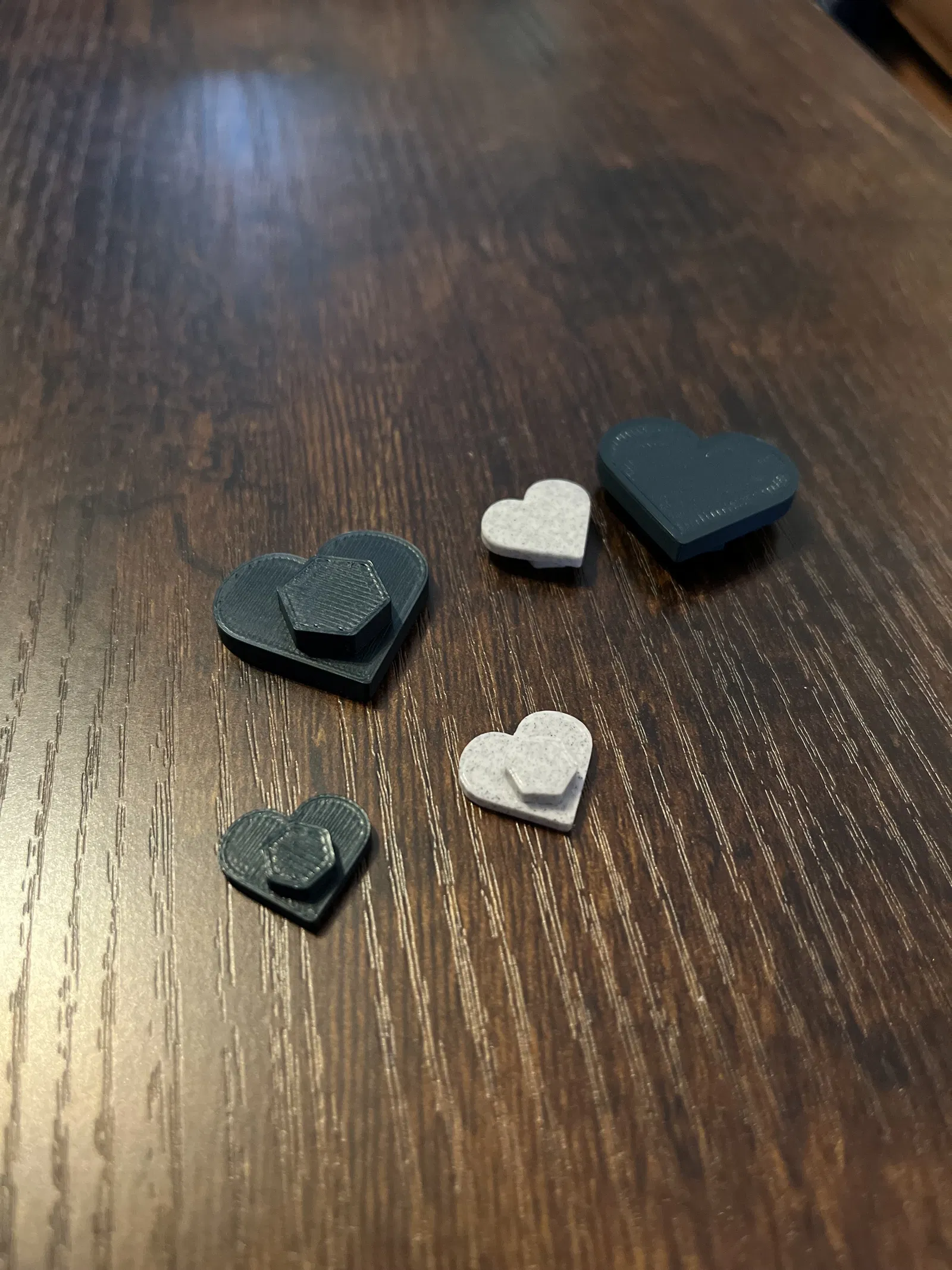 Để test, mình in nhiều cái cùng lúc với chênh lệch kích thước nhẹ để tìm ra mức fit đủ chặt để giữ chắc, nhưng vẫn dễ tháo ra để đổi chỗ và trang trí lại.