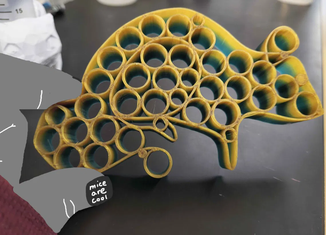 Có người muốn in một mẫu art hình con chuột, nhưng có thêm các khe để cắm ống microcentrifuge.