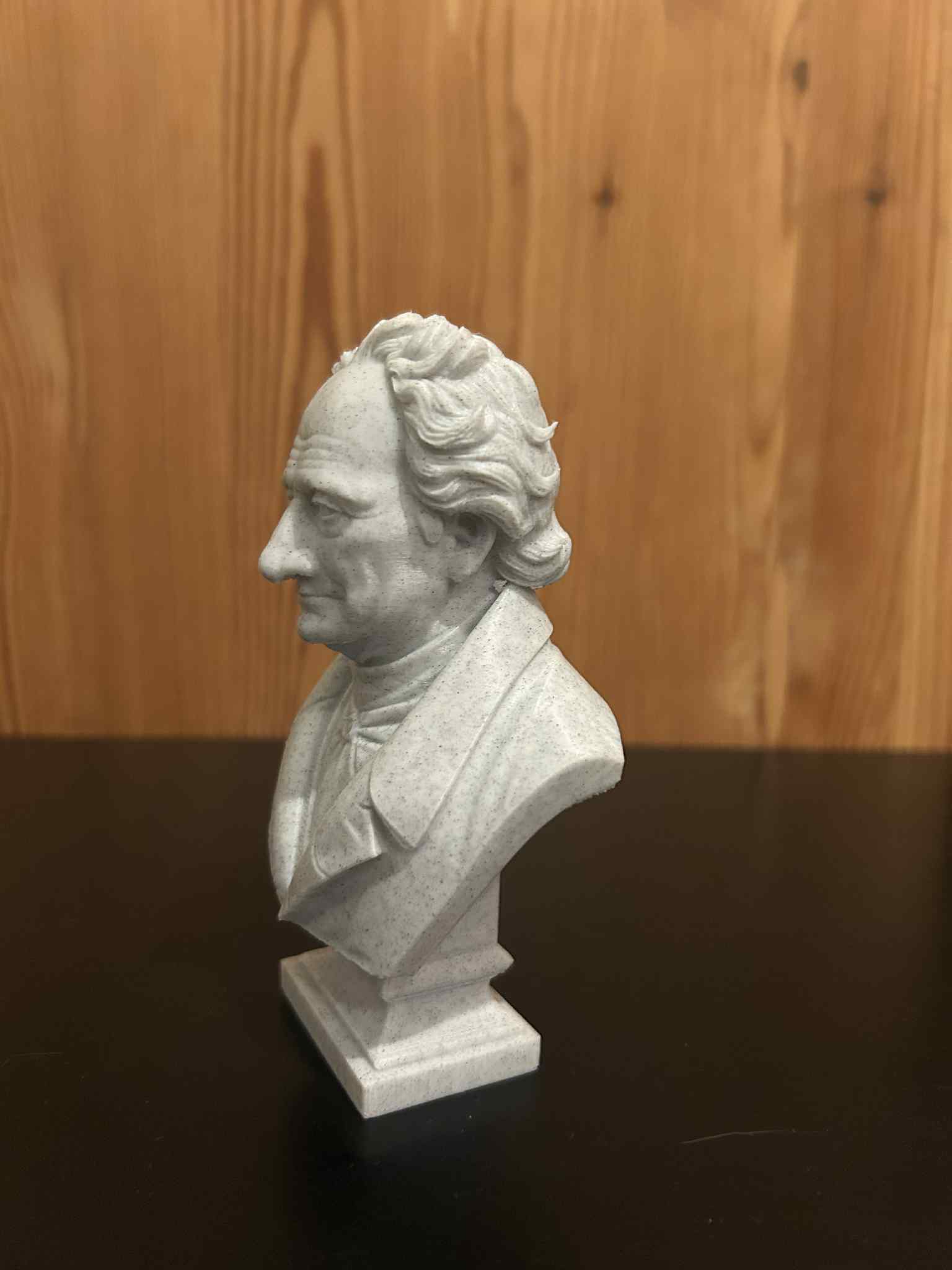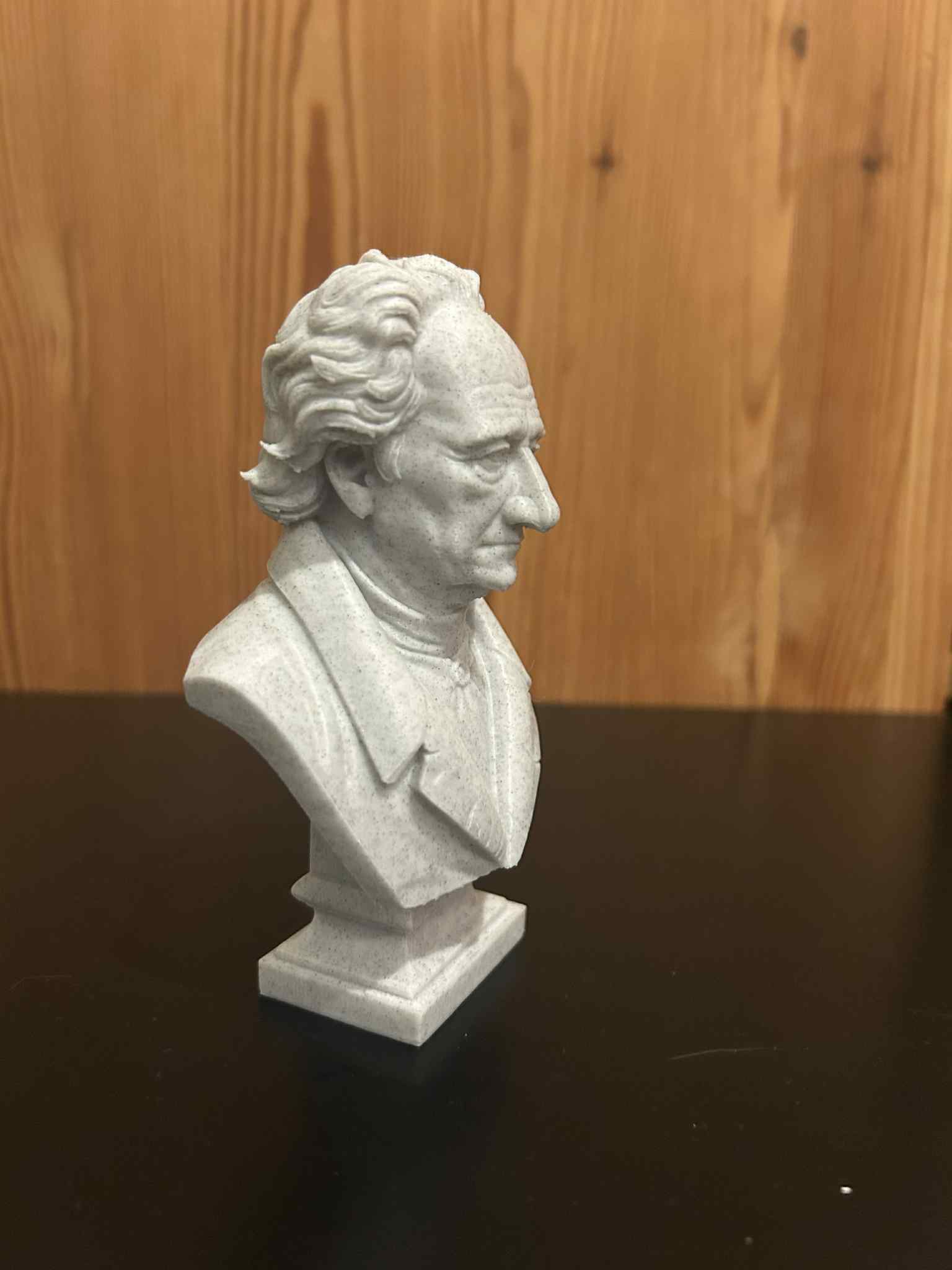 Mẫu bust khắc họa Johann Wolfgang von Goethe, tái hiện từ bức ảnh biểu tượng nhất của ông. Giữ kỹ tỷ lệ gương mặt, nét điềm tĩnh suy tư và các khối rõ ràng theo phong cách tượng bán thân cổ điển, tôn trọng độ bất đối xứng tự nhiên.