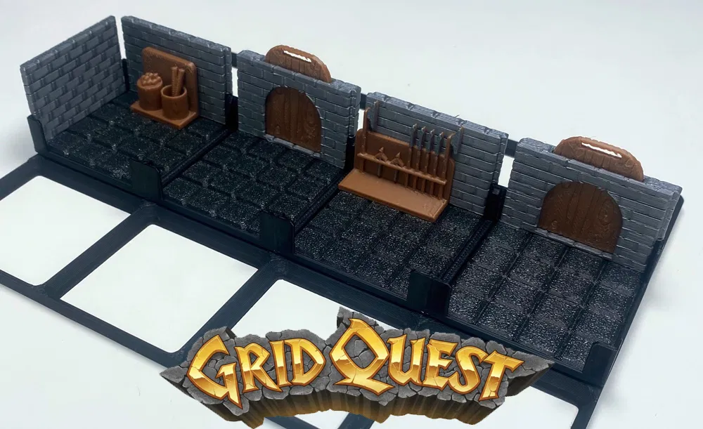 Nhưng ngay cả khi KHÔNG dùng box, GridQuest vẫn có thể chơi tự do trên các khung base Gridfinity tiêu chuẩn với mọi kích cỡ trên bàn. Ví dụ, việc dựng lại bàn cờ HeroQuest nổi tiếng theo tỉ lệ 1:1 là hoàn toàn khả thi. Tất cả các phần (tường, cửa, baseplates) đều được cung cấp để tải về.