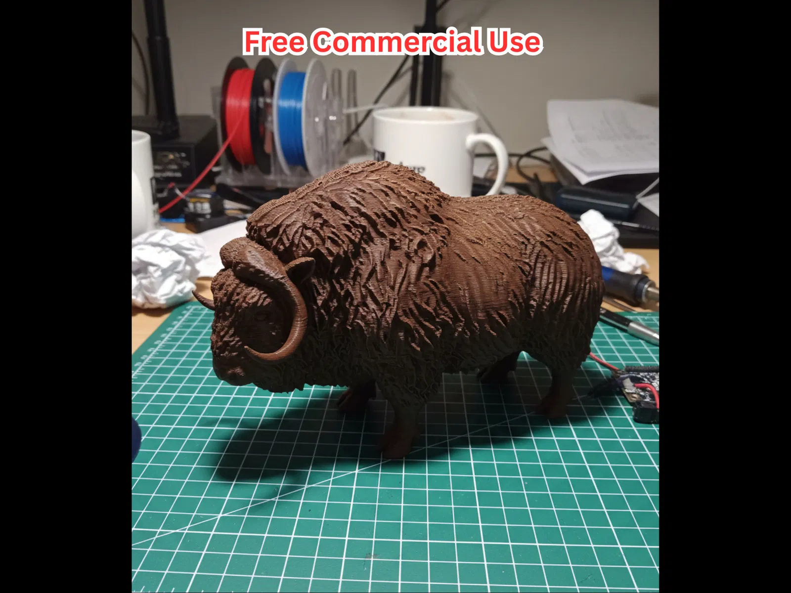 Tượng bò xạ hương này tái hiện vẻ hoang dã, rắn rỏi của động vật vùng Bắc Cực, đồng thời vẫn được tối ưu cho in FDM và trưng bày ngoài đời thực.