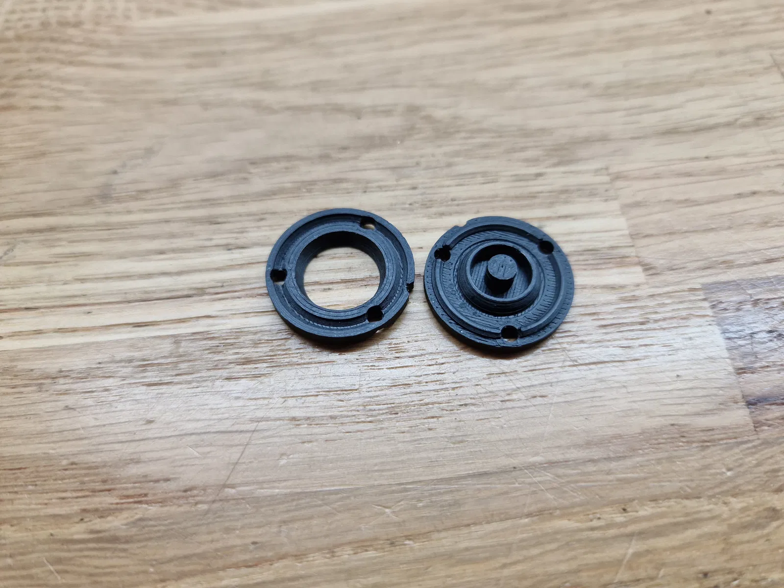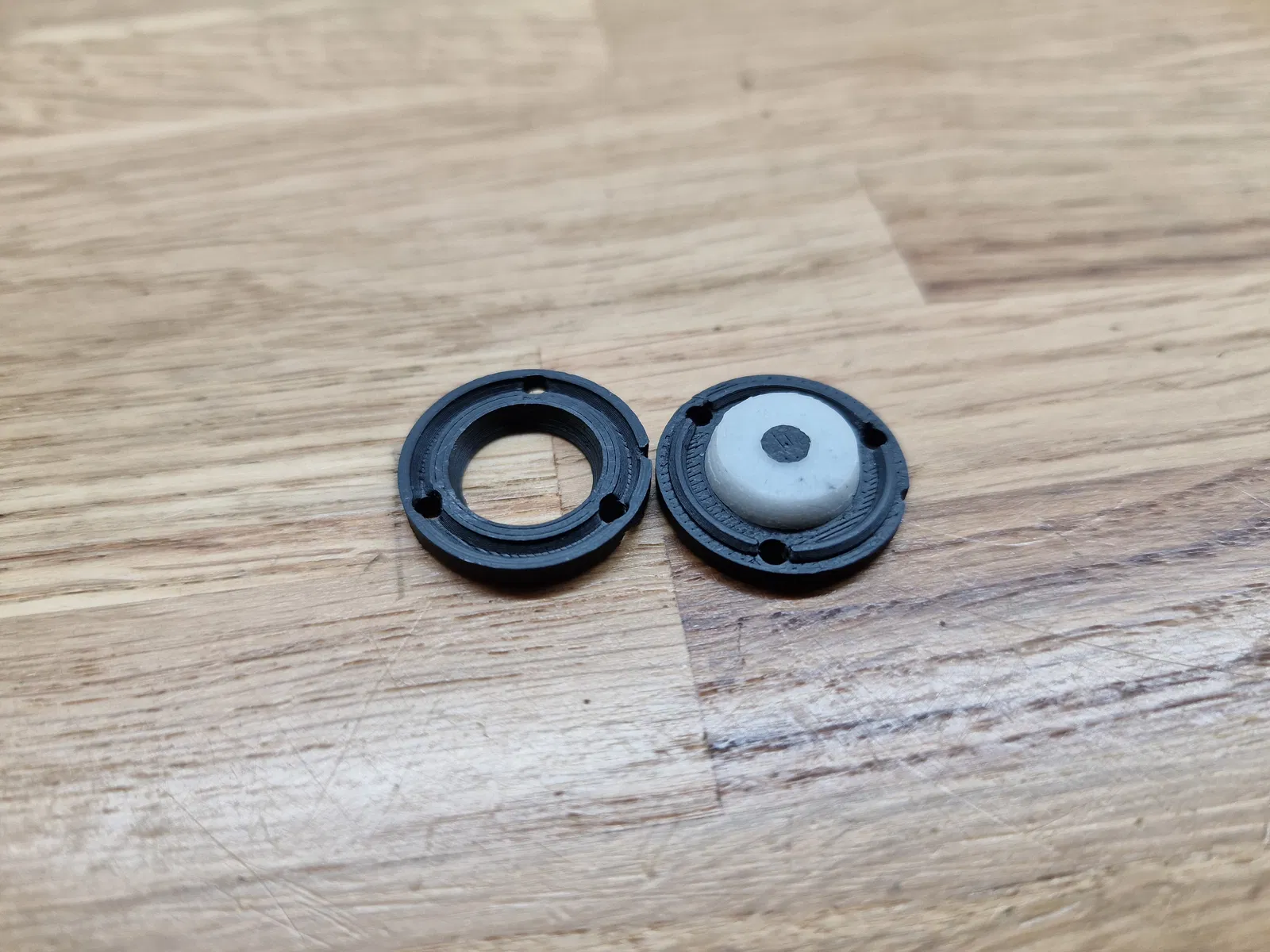 Khuôn 2 mảnh để đúc piston seal cho Tom Stanton Compressed Air Engine, giúp silicone không bị dính khuôn như kiểu cũ. Chỉ cần bôi/đổ silicone rồi ép 2 nửa lại; gợi ý thông số in 0,2mm/0,12mm hoặc 0,4mm/0,08mm.