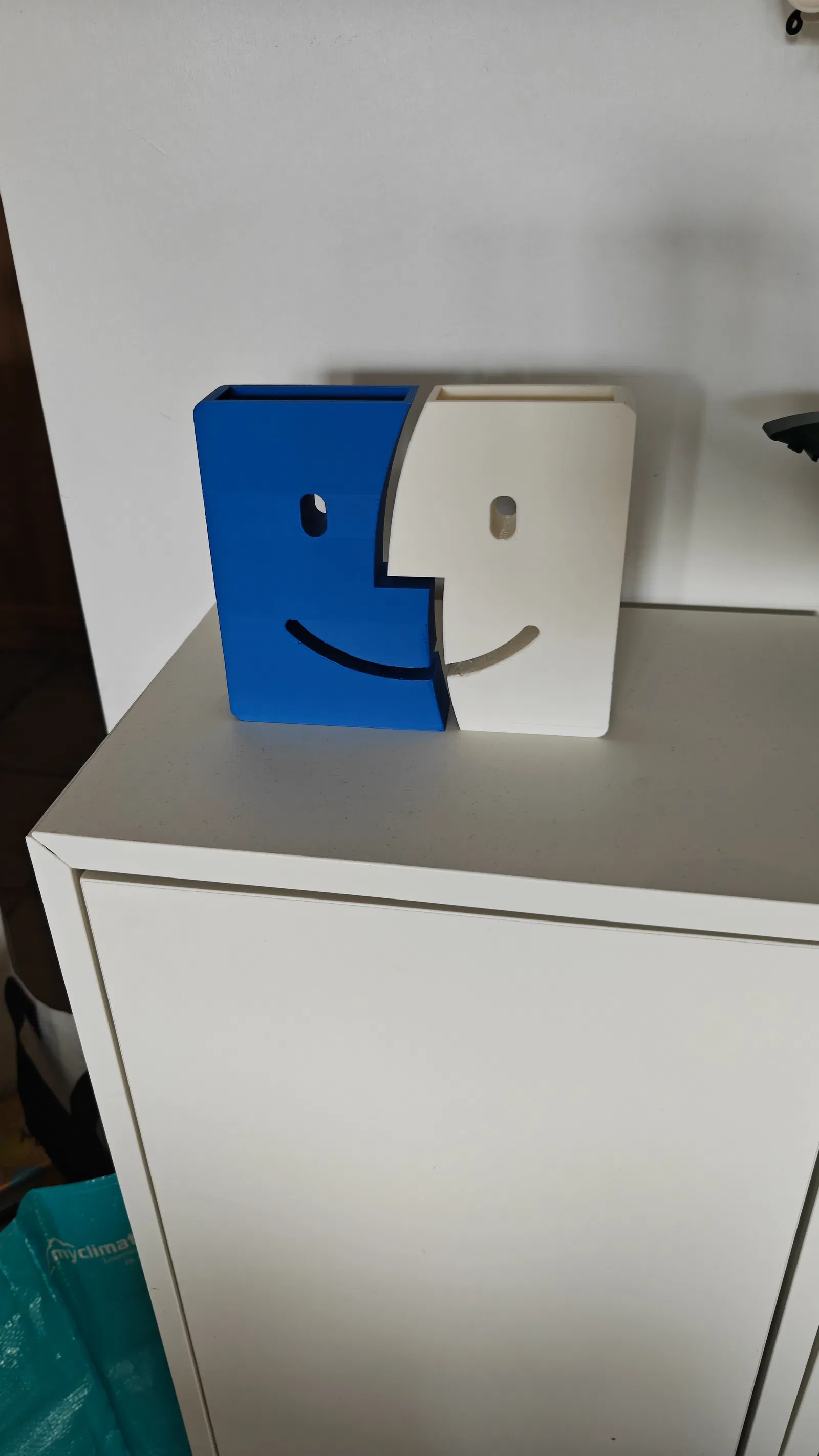 Mẫu bình hoa 2 phần lấy cảm hứng từ icon Finder trên macOS. In bằng PLA hai màu Blue và Cotton White để ra đúng chất “Mac cổ điển”. Có hướng dẫn supports và setting 4–5 walls để in kín nước.