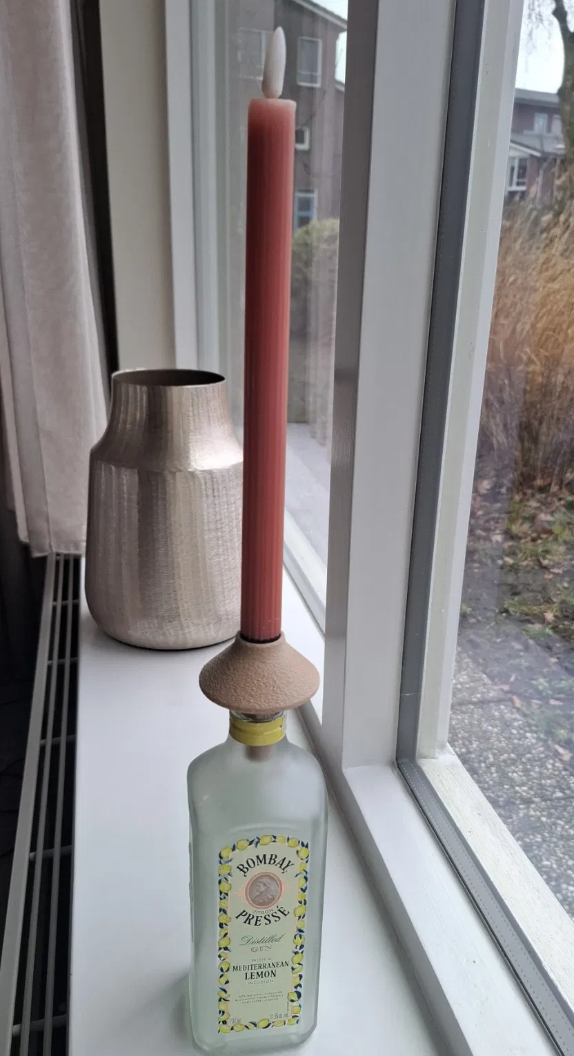 Biến mấy chai rỗng bạn thích thành món decor nhà cửa cực xịn với adapter nến taper 3D print tối giản này. Dù là chai gin kiểu vintage hay chai rượu vang quen thuộc, cái holder này cho độ khít vừa đẹp, lên form hiện đại với bề mặt có texture.