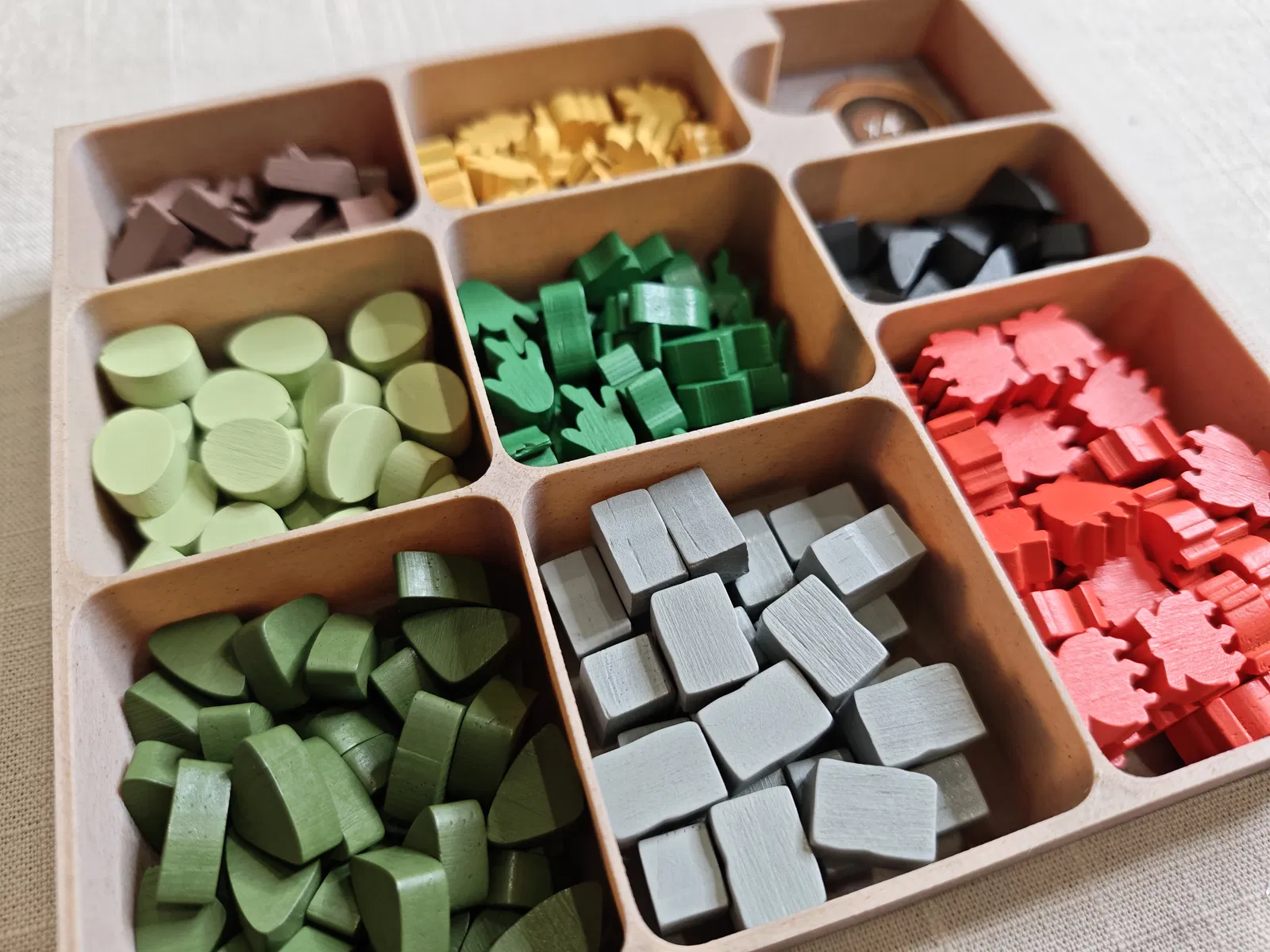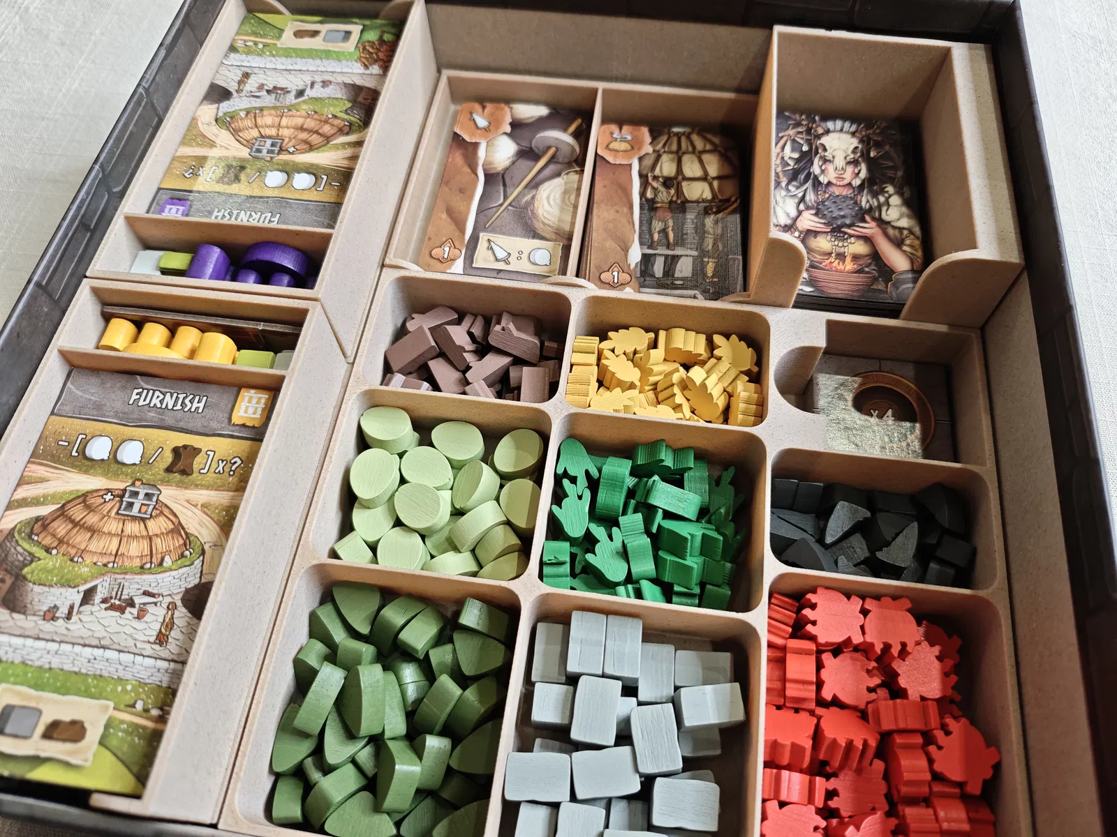 Bộ organizer cho board game Skara Brae. Các khay/hộp được thiết kế để base game và các promo đều đặt vừa trong hộp.