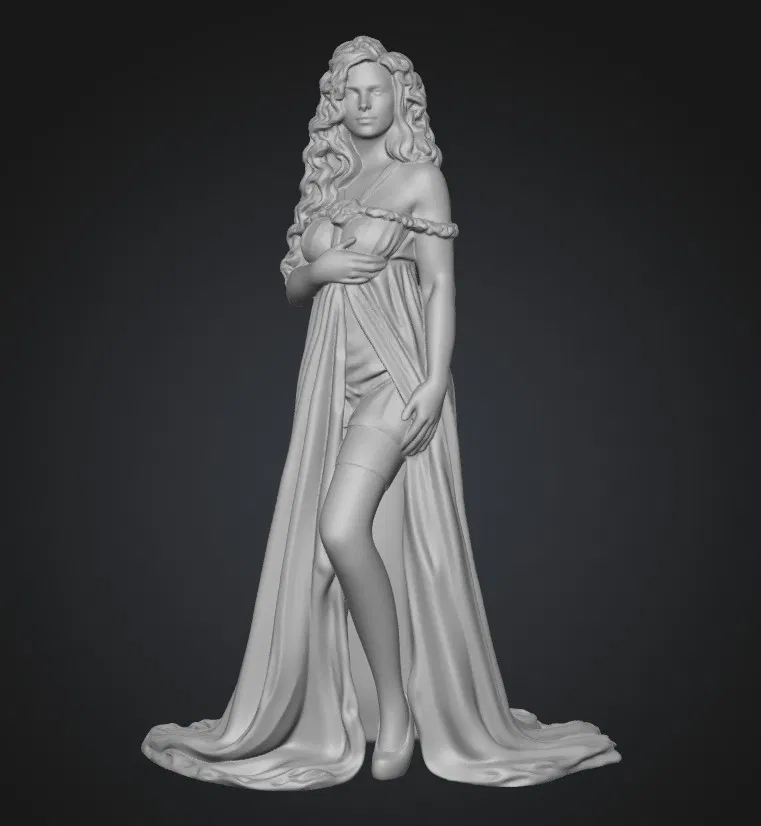 Mẫu “Elegance in red” tái hiện vẻ đẹp thanh lịch của một cô gái trong chiếc váy ngủ đỏ quyến rũ. Phù hợp để trưng bày, sưu tầm hoặc làm mô hình in 3D theo phong cách nữ tính, nhẹ nhàng.