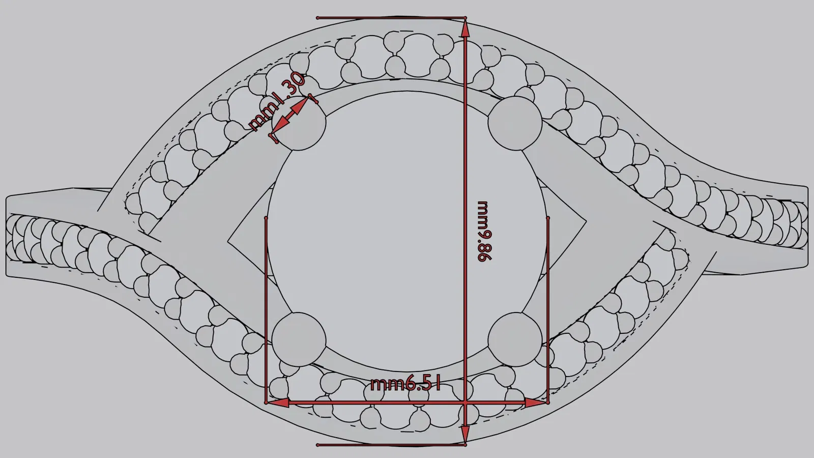 Mẫu nhẫn đính hôn xoắn hiện đại sẵn sàng render và in 3D. Bộ gồm 11 size từ 15.28mm (US 4.5) đến 18.46mm (US 8.4), mỗi size cách 0.32mm. Đá chủ: kim cương 1ct 6.49×3.93mm.