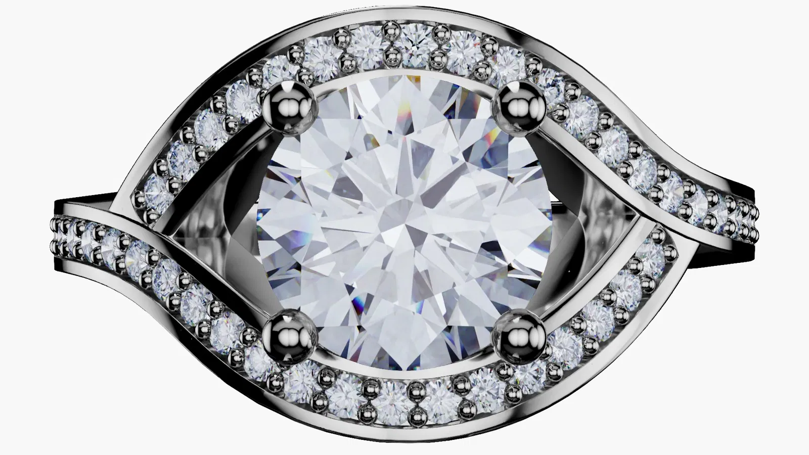 Nhẫn đính hôn xoắn hiện đại đính kim cương in 3D