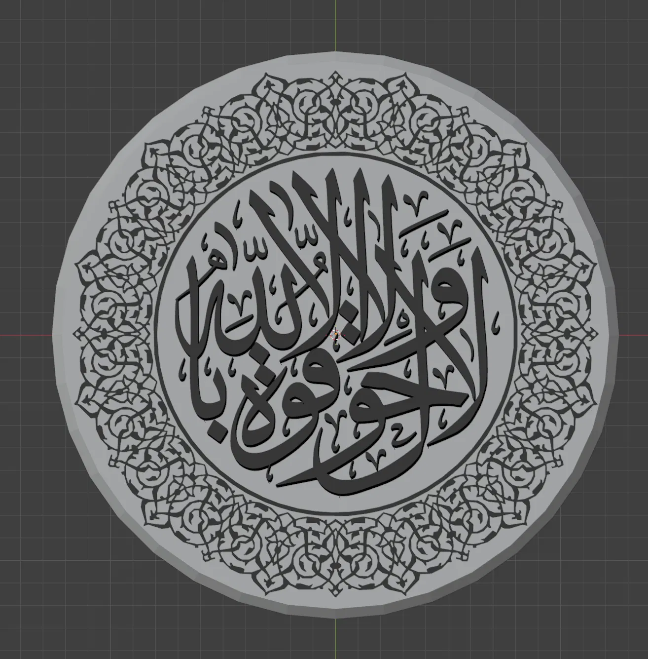 Mẫu họa tiết trang trí Hồi giáo dạng thư pháp Ả Rập, với câu “Không có quyền năng hay sức mạnh nào ngoài Allah.” (لا حول و لا قوة الا بالله). Có kèm link tải file Blender (Public Domain) để sửa thêm.