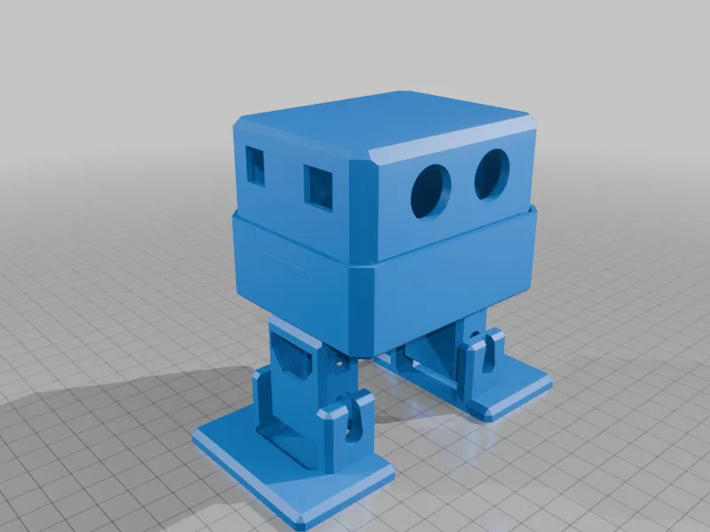 brain_type = uno servo_type_hip = sg90 servo_type_ankle = sg90 body_width = 82 body_depth = 68 body_height = 29 head_height = 34 body_thickness = 1.75 head_thickness = 2 nose_diameter = 6 nose_distance = 15 brain_screw_size = 2 brain_screw_thru = 0 leg_solid = 0