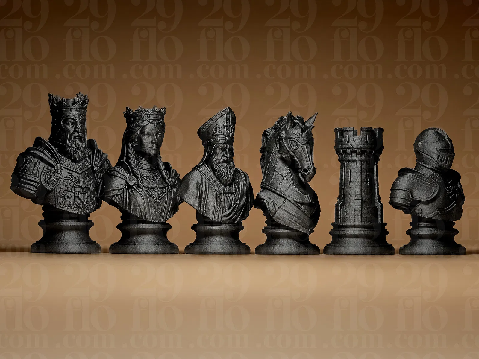 Bộ cờ vua Chess Set Medieval Stylized mang phong cách Medieval cách điệu, nhiều chi tiết mịn. Khuyến nghị in resin; FDM vẫn đẹp với nozzle 0.4mm và layer 0.08–0.1mm. Nên dùng infill cao để quân cờ nặng tay hơn.