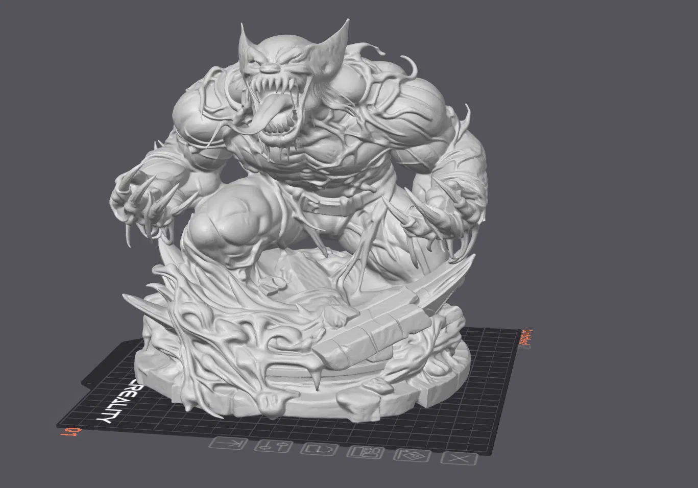 Mẫu tượng/bust VenomxWolverine (We are Venom) phong cách Marvel. Khuyến nghị in layer height 0.12 hoặc thấp hơn, dùng tree supports (tree organic), top Z distance 0.20 và để support mỏng để tháo dễ.