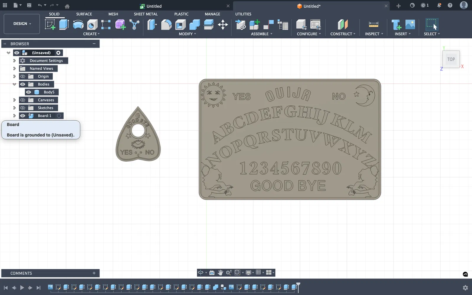 Mẫu OUIJA BOARD là một board game Ouija đơn giản. Bạn đặt board lên bàn hoặc đùi, chạm nhẹ vào planchette để hỏi đáp; planchette sẽ trượt đến chữ/số hoặc “YES/NO”, và kết thúc ở “GOODBYE”.
