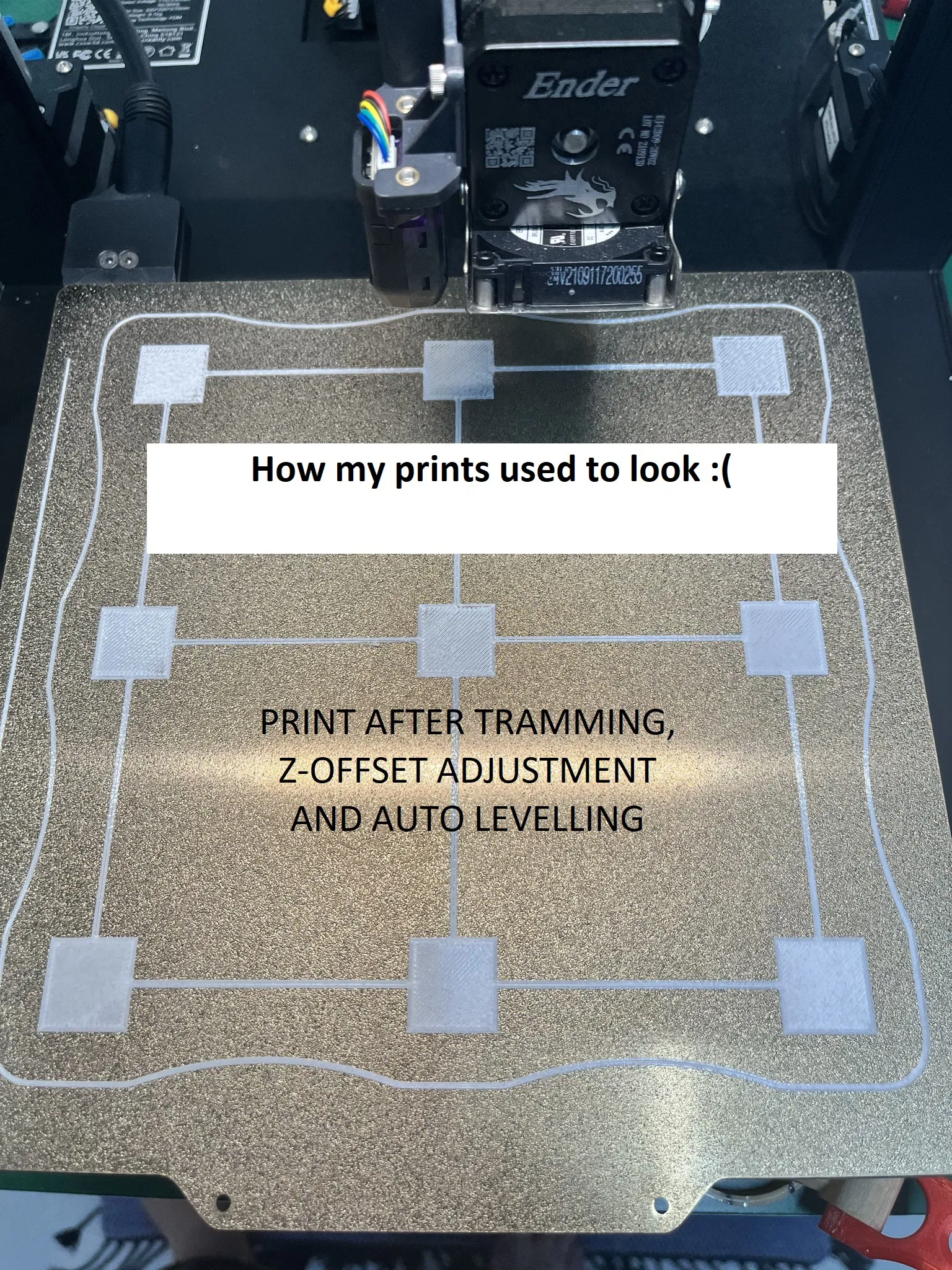 Mình loay hoay với việc in “calibration square” cho chuẩn từ lúc mua Ender3S1 tới giờ. Ừ thì mình vẫn in được nhiều món ổn, nhưng đa phần là đồ nhỏ và nằm gần giữa bàn. Hễ in đồ lớn hơn là bắt đầu bị vấn đề bám lớp (layer adhesion) và đủ thứ rắc rối. Giờ thì hết rồi—cuối cùng cũng xử được, nên mình chia sẻ trải nghiệm này với hy vọng giúp được thêm vài bạn.