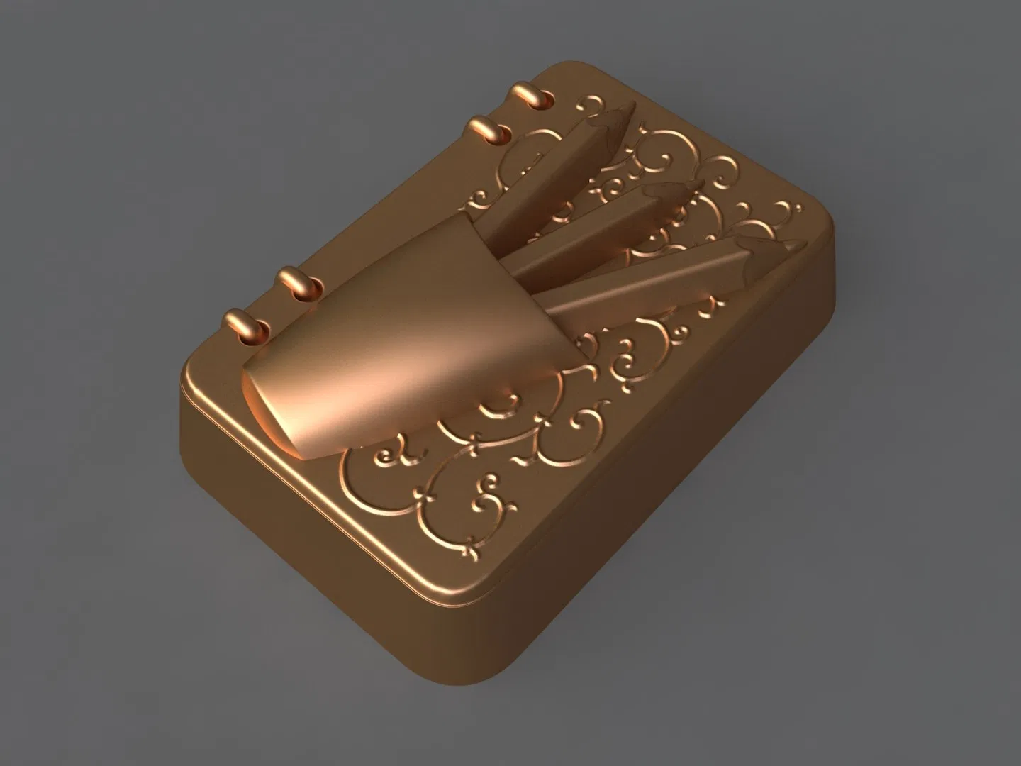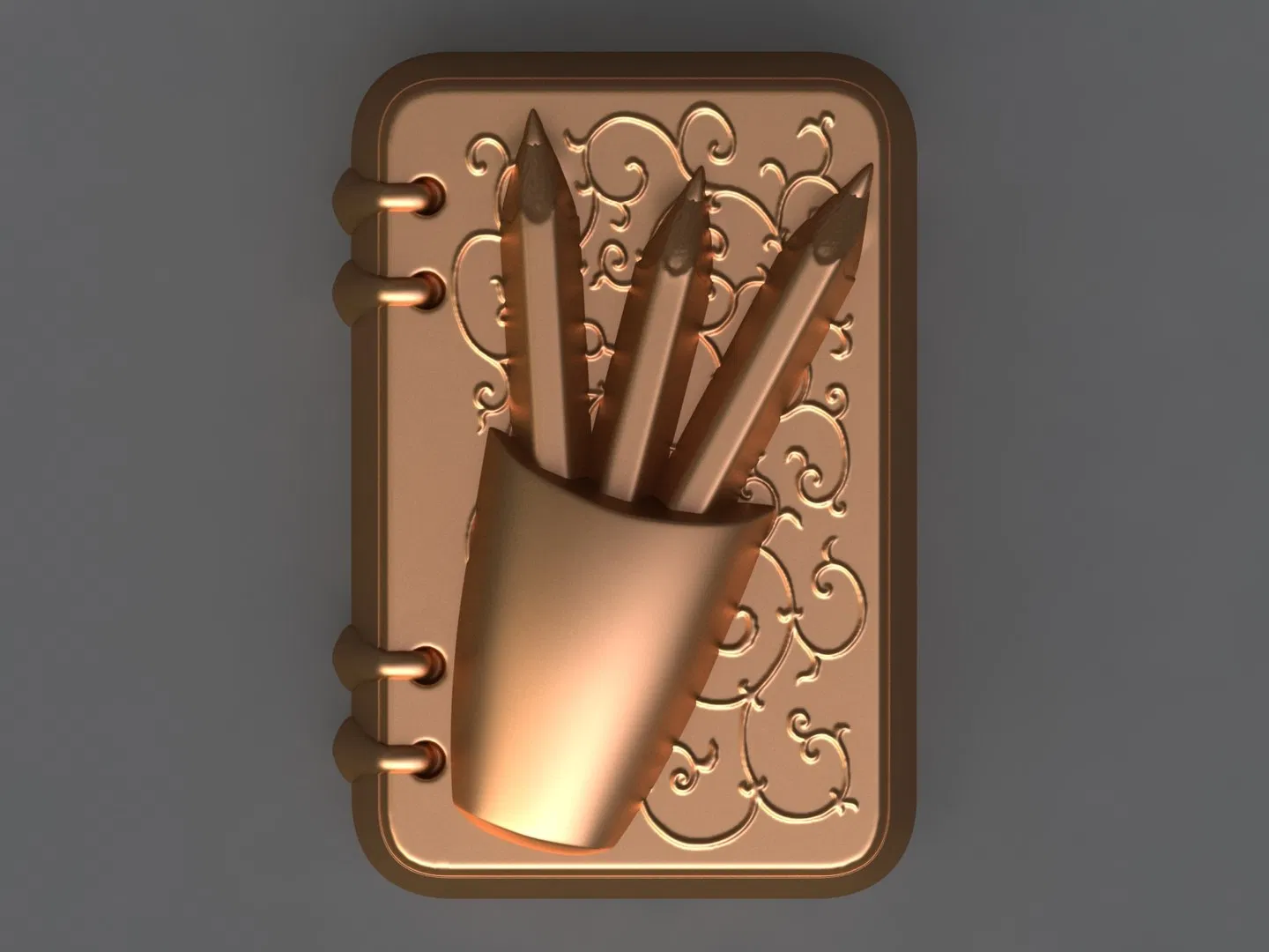 Mẫu 3D chất lượng cao cho khuôn Notebook and the pencils, dùng làm xà phòng handmade, chocolate hoặc nến. File đã được kiểm tra và khuôn thực tế đã sản xuất theo mẫu này, sẵn sàng để 3D print.