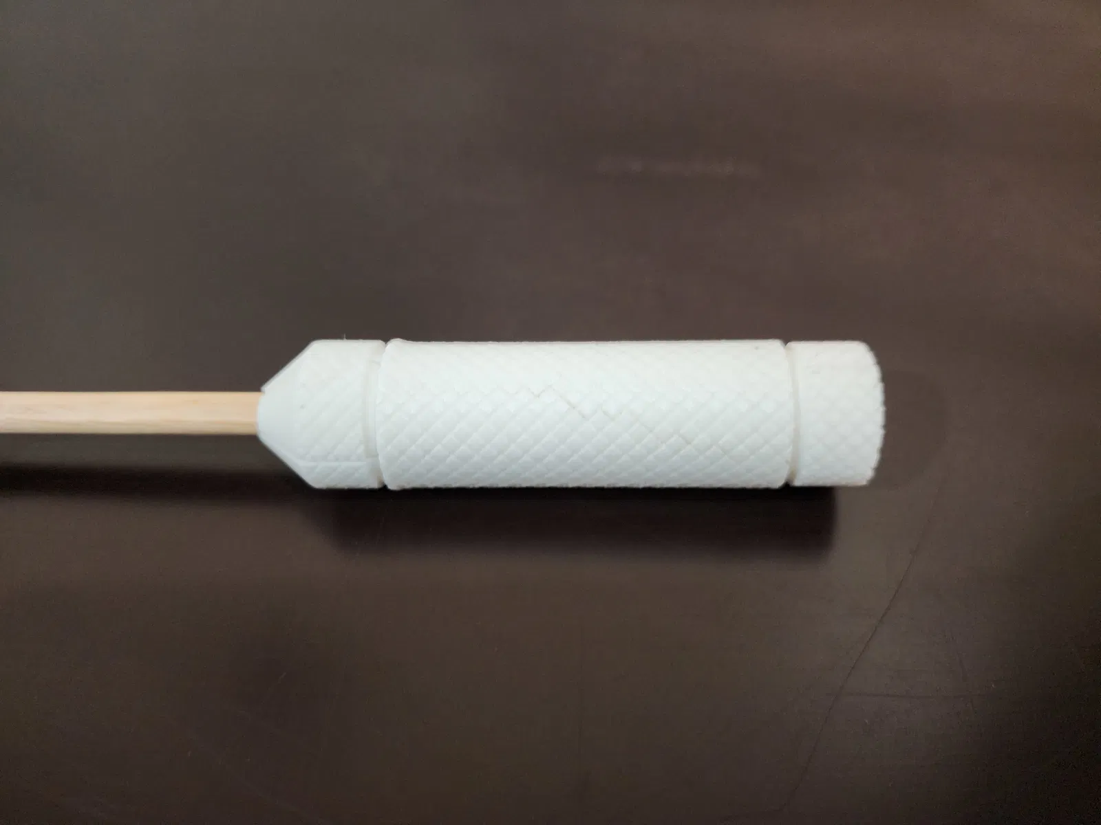 Bạn chỉ cần lông vũ, một cây ty 1/4" (dùng wood dowel là ngon), và chưa tới 1 đô tiền filament. Bạn còn có thể nhét đầu dây/string/cord vào phần “đầu lông vũ” để dùng thiết kế này với những kiểu gắn phụ kiện khác.