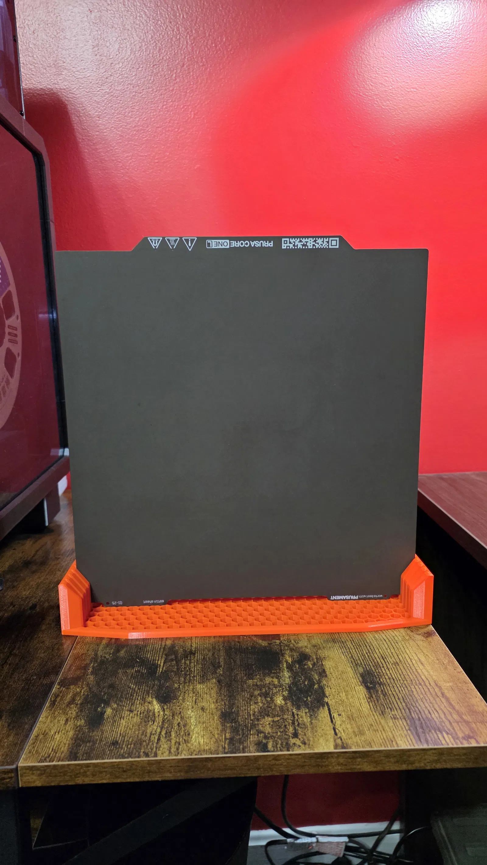 Kệ để Print Sheet 6 khe cho Prusa CORE One L. Phù hợp để cất giữ nhiều tấm Prusa Print Sheet gọn gàng; hiện dùng 3 tấm và có thể mở rộng thêm. Kích thước 305 x 305 vừa khít.