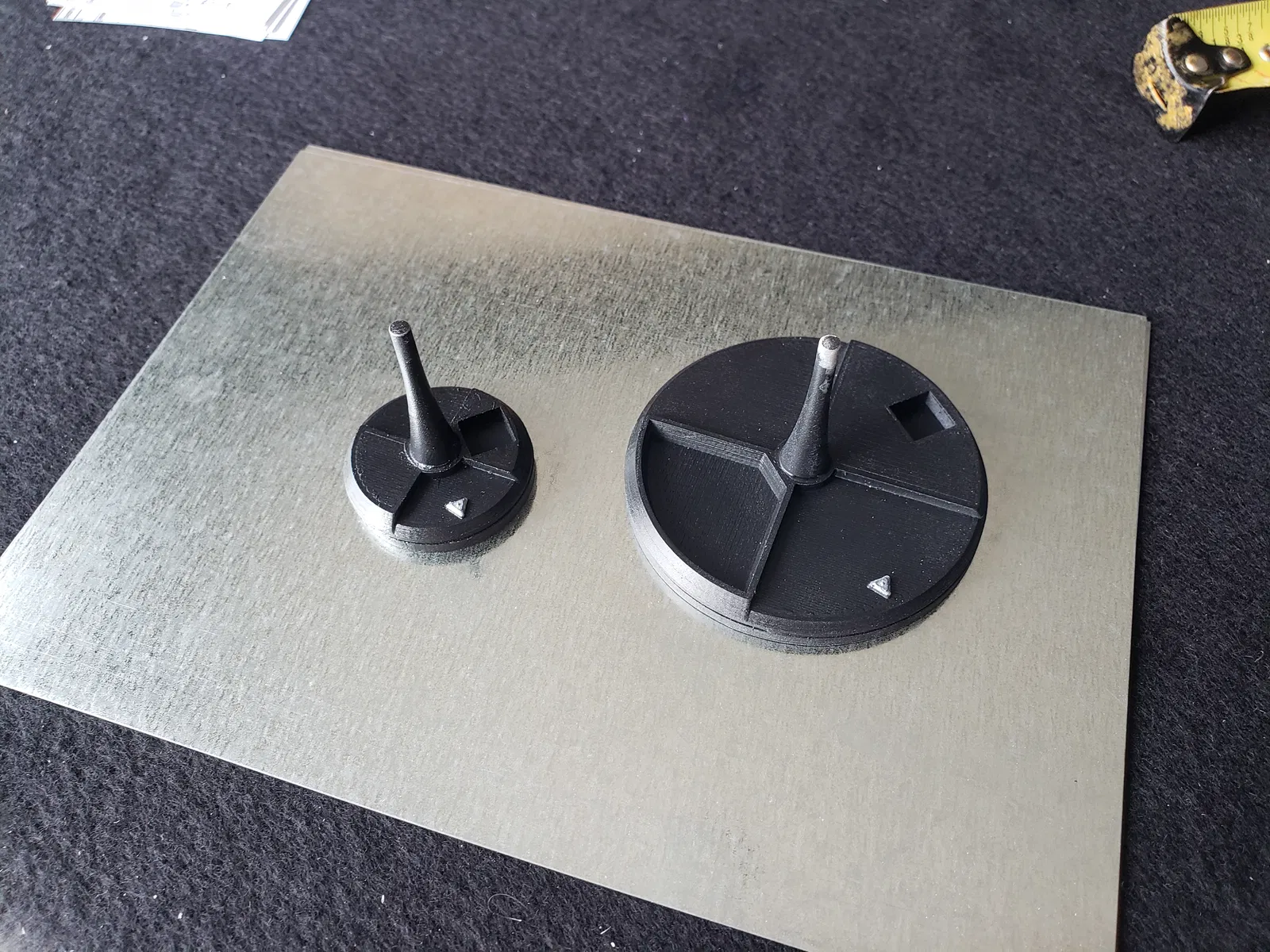 - Đế được canh kích thước để mặt dưới có thể nhét vừa một miếng metal flashing và một viên nam châm sâu 1.6mm.