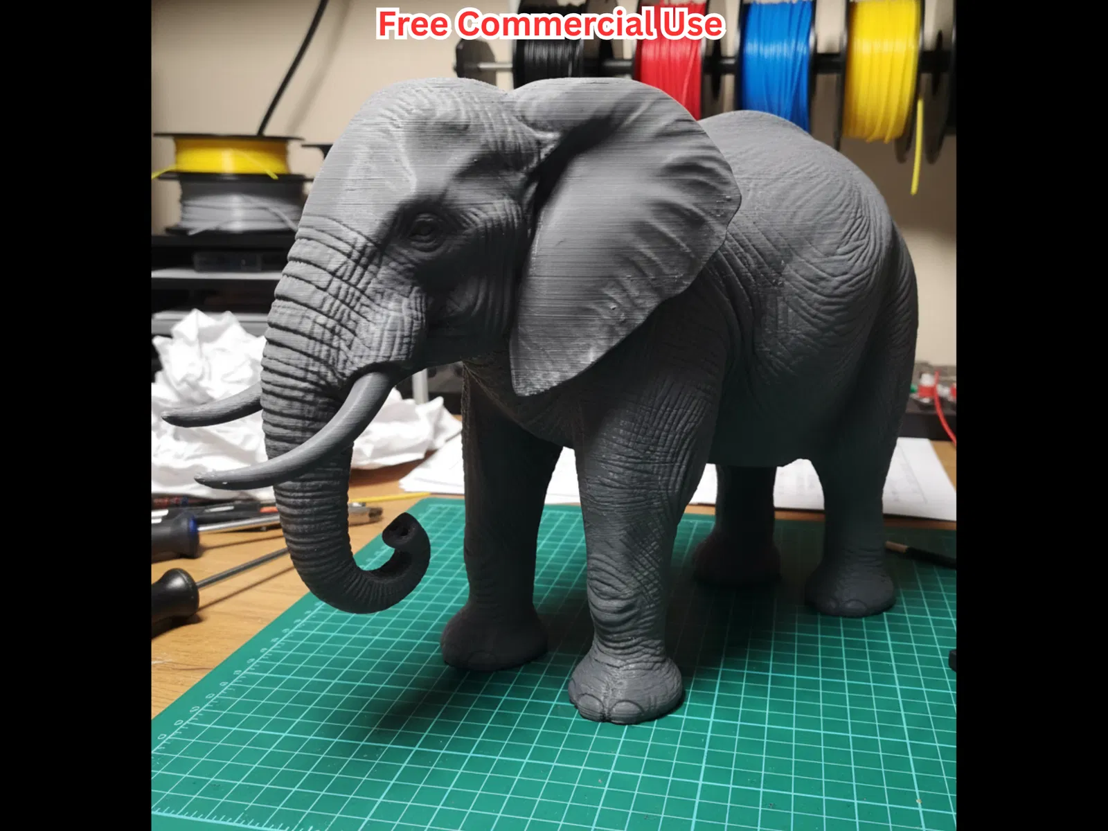 Tượng voi châu Phi này nhấn mạnh khối và bề mặt (texture) trong khi vẫn giữ hình học thân thiện với FDM và vẻ ngoài như bản in thật.