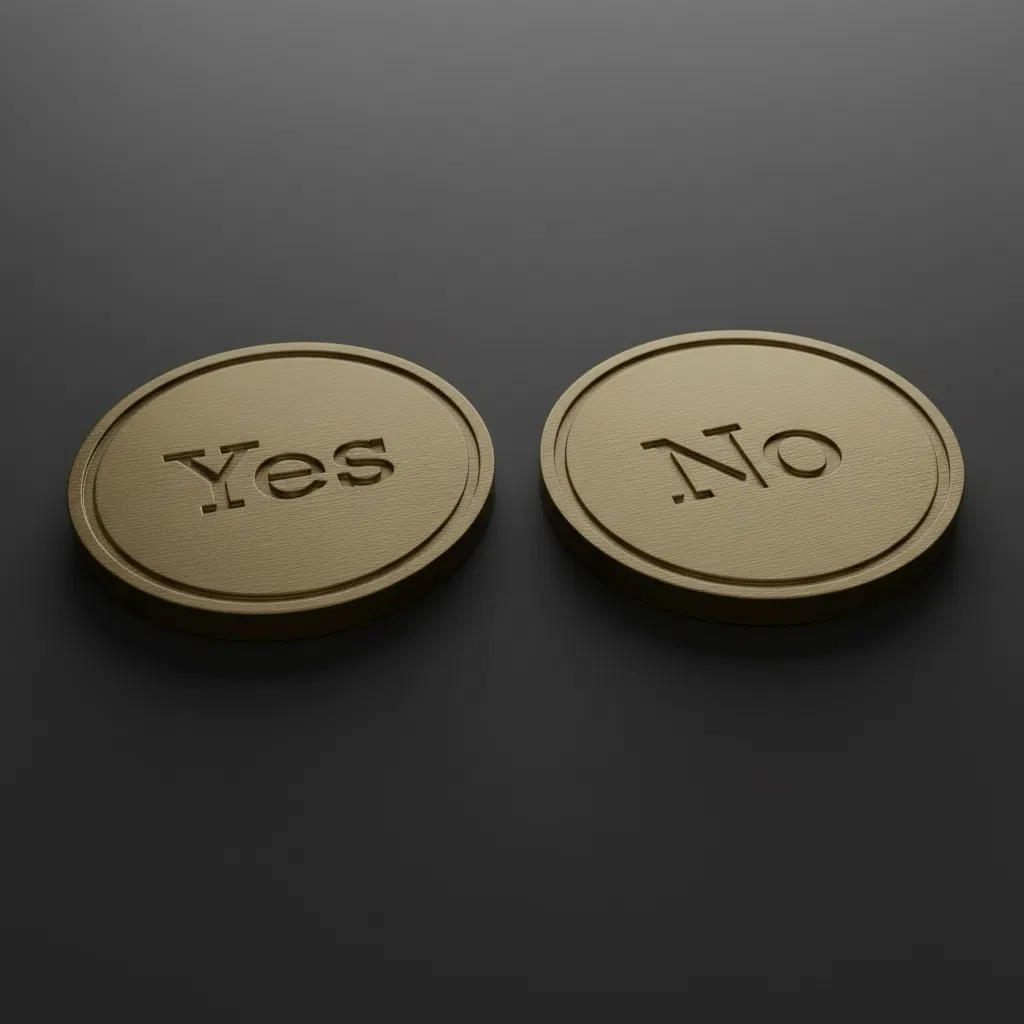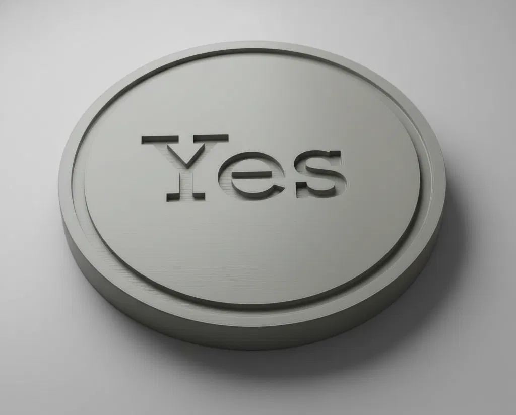 Không biết chọn sao? Để hên xui quyết định giúp bạn! Đồng xu quyết định Yes / No này là một token 3D printable kiểu sạch, tối giản, làm ra để chốt lựa chọn nhanh trong trò chơi, thử thách, hoặc mấy quyết định thường ngày.