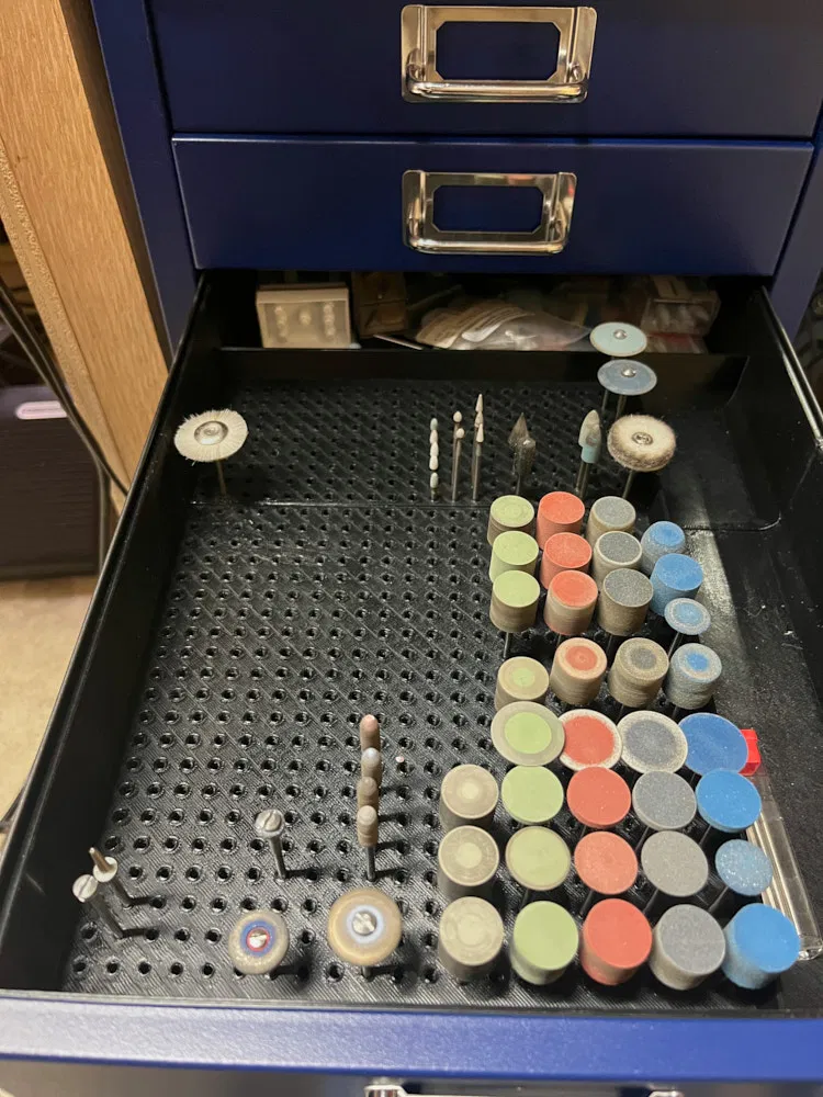 Mẫu 3 là một insert cho ngăn kéo cao 2", có rất nhiều khe để đựng hộp bur 5 món, một khu khe 2.35mm cho từng bur rời, một khoảng dài để để dũa (files) hoặc các món dài khác, một khoảng vừa cho các hộp bur khác, và một khoảng phía sau để để đồ linh tinh khác. Các khoảng lớn đều có các rãnh nghiêng bên trong để dễ với tay lấy đồ hơn.