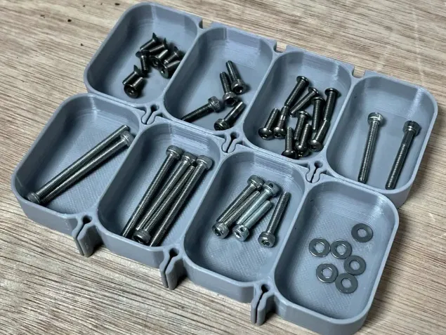 Khay ốc modular khóa liên kết với nhau – màu bạc như trong hình. Đáy phẳng và in không cần support.