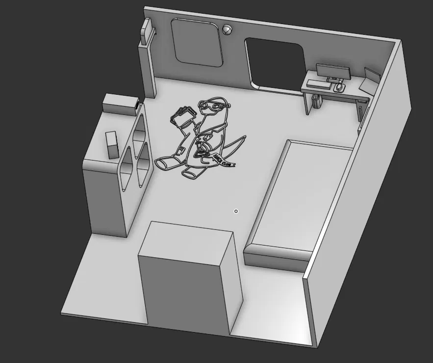 Mẫu 3D “Room” mô tả phòng của mình. Nội dung đơn giản, phù hợp để chia sẻ bố cục không gian phòng và làm mô hình tham khảo; có thể dùng để trưng bày hoặc thử nghiệm khi in 3D.