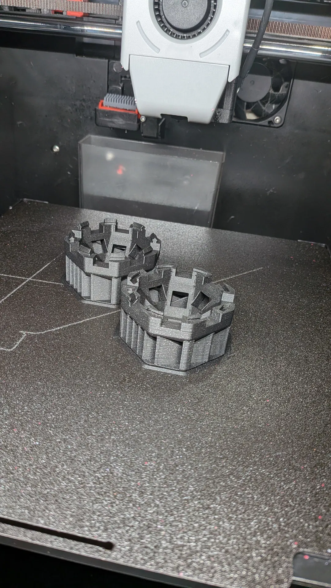 Hình minh họa có 3 kích cỡ bản in mình đã làm: cỡ ở giữa là model mặc định. Bản lớn được scale 175% và bản nhỏ được scale 50% trong Orca Slicer.