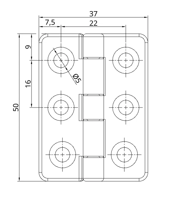 Bản lề in 3D này gồm hai lá bản lề chắc chắn, với khớp nối cấu tạo từ 5 phần tử. Nhiều lỗ bắt vít giúp lắp đặt dễ dàng và cố định an toàn. Rất hợp cho các ứng dụng chức năng trong nhà, dùng đa dạng trong môi trường maker và DIY.