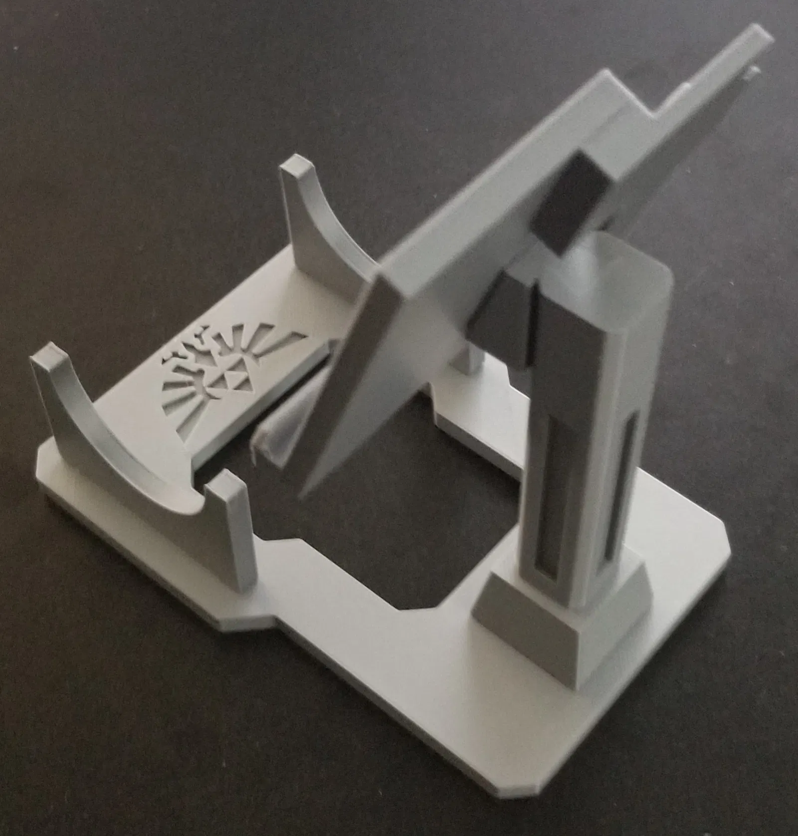 Mẫu kệ đỡ Ocarina kết hợp kệ trưng bày logo Ocarina of Time. In khuyến nghị 10% infill, layer height 0.1mm (base 0.2mm), dùng Elegoo PLA Space Grey. Thiết kế lắp vừa, không cần keo.