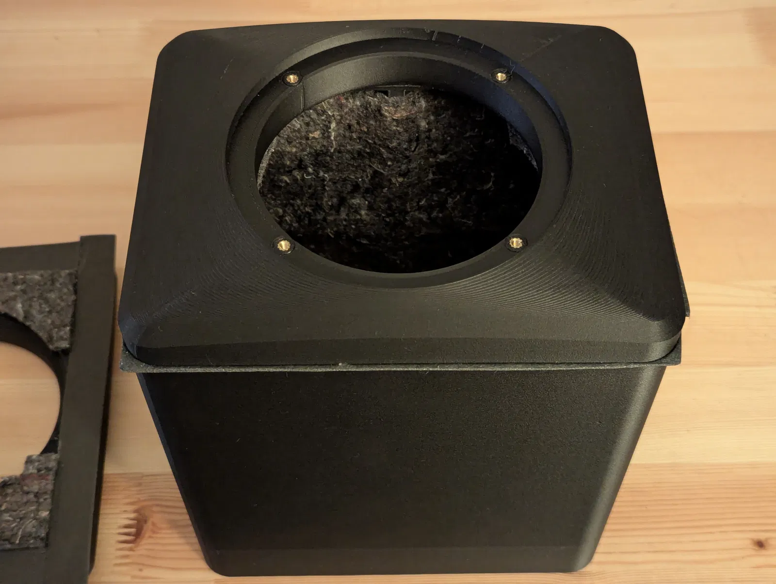 Loa monitor studio “active” coaxial 4" nhỏ gọn, in 3D, có DSP (chỉ nhận input digital do giới hạn của board DSP/amp). Thùng loa thiết kế kín (sealed) để đạt tốc độ transient và khả năng canh mid-range tốt nhất, nhắm Qtc 0.50 (Critically Damped) và tối ưu độ gọn. Loa được thiết kế với ý tưởng dùng kèm subwoofer riêng (crossover/HPF 80Hz) nên đừng kỳ vọng đáp tuyến dải trầm sâu tốt. Về thẩm mỹ thì dĩ nhiên lấy cảm hứng từ loa Kef LS và thiết kế baffle chống nhiễu xạ (anti-diffraction). Mục tiêu dự án là tạo ra cặp monitor “chuẩn nghề” cho nghe kiểm âm và sản xuất nhạc.