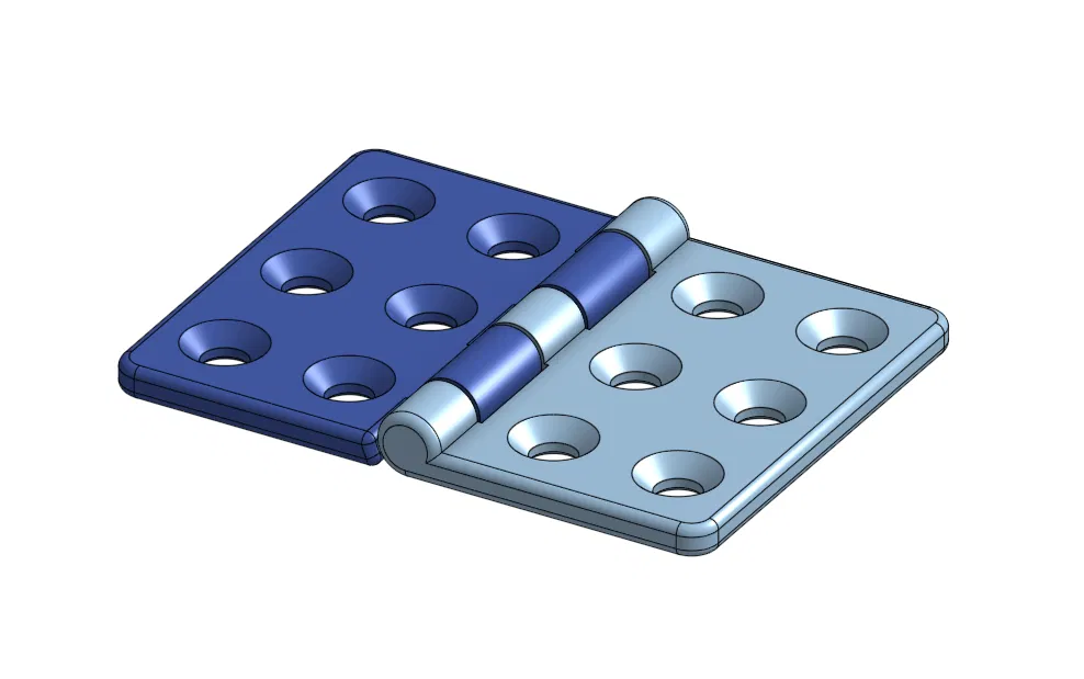 Bản lề phải được in đúng như hình minh họa, nguyên khối một lần. Đừng tách model ra thành các phần riêng, vì các tấm/lá bản lề không được thiết kế để lắp ráp lại sau đó.