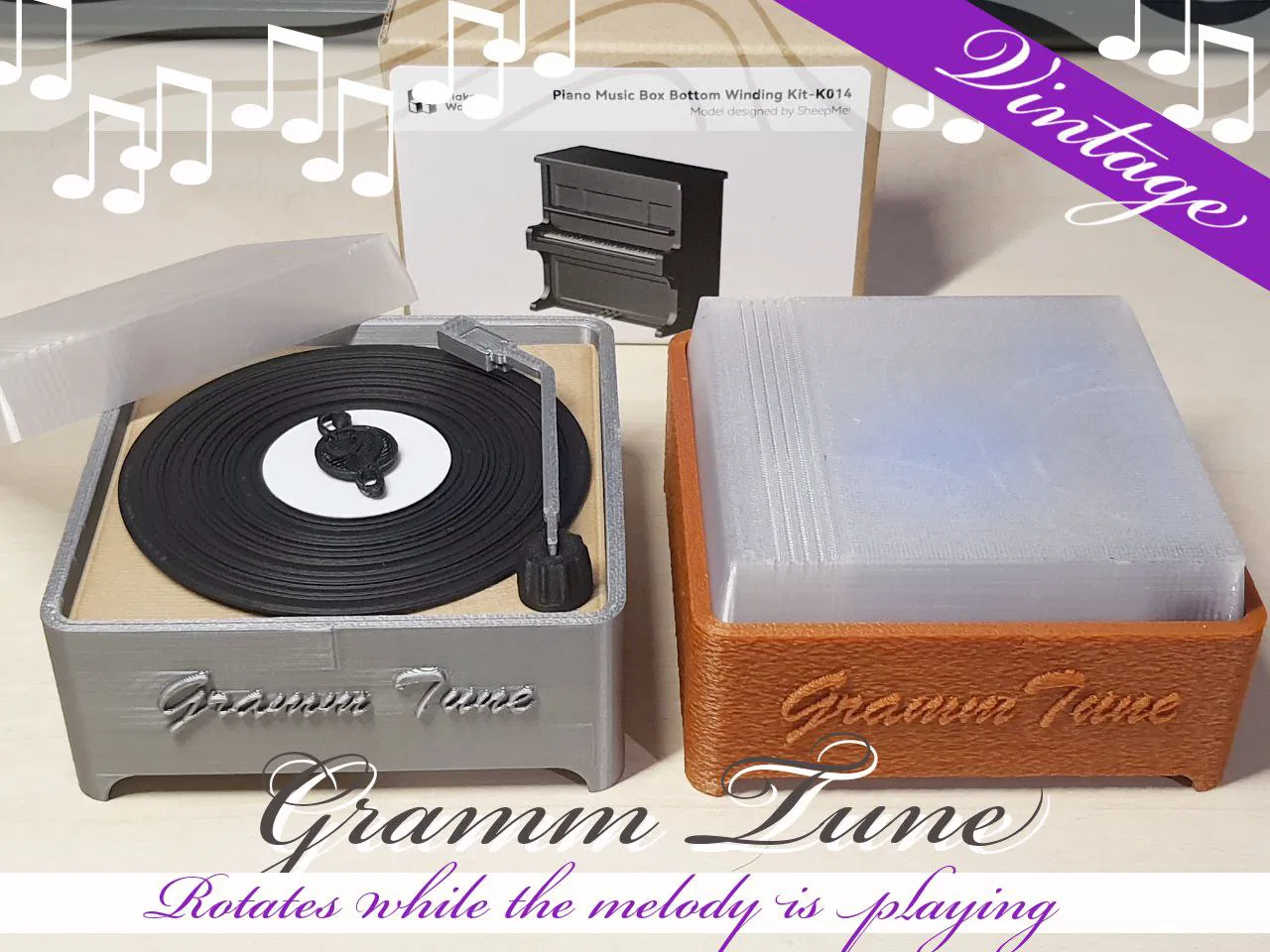 Giới thiệu Gramm Tune (music box) – một mẫu 3D-print dễ thương, kết hợp vẻ ngoài của máy nghe đĩa kiểu vintage với cơ chế đầy mê hoặc của hộp nhạc truyền thống.