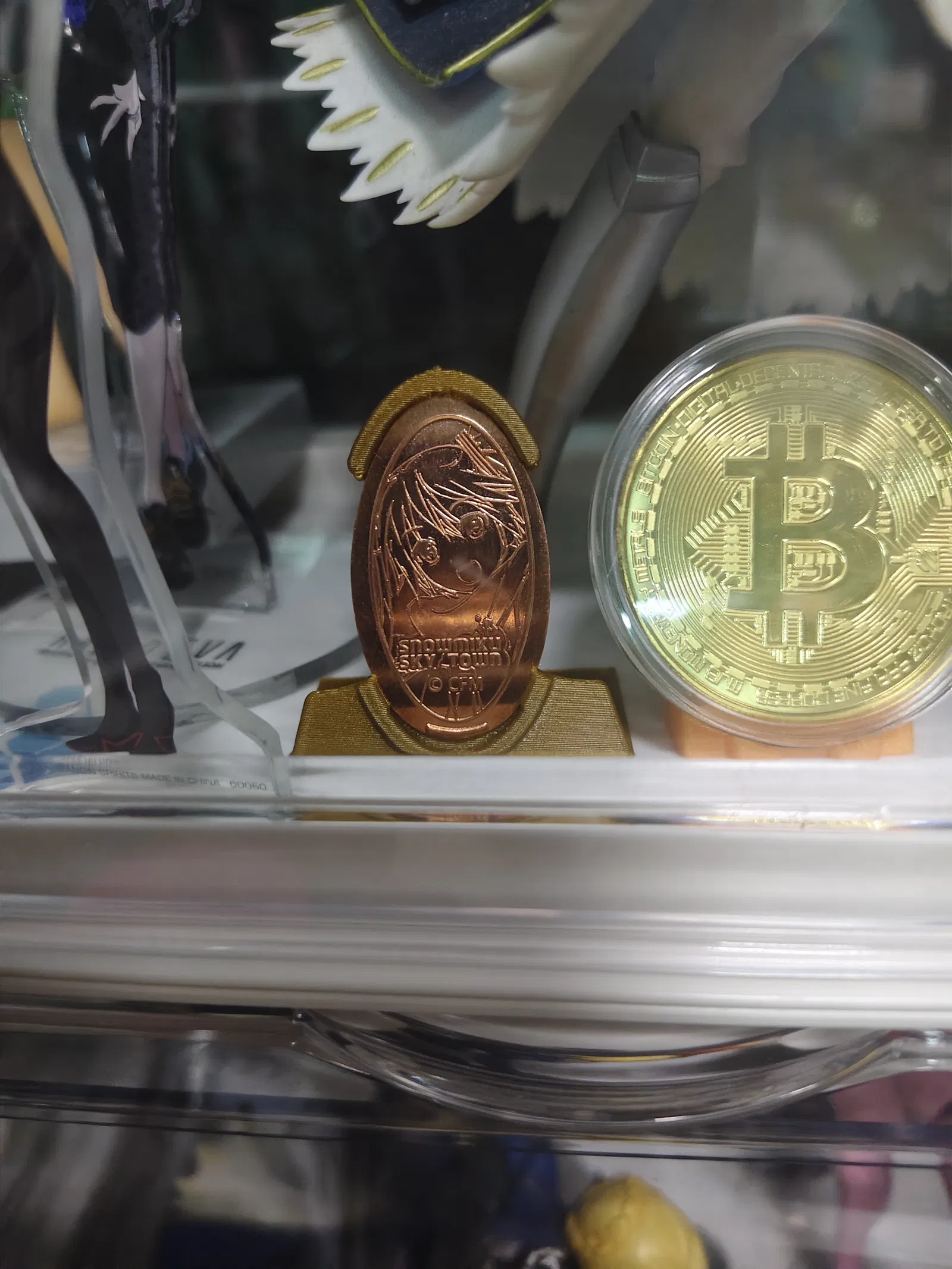 Đây là cái giá đỡ cho một món quà lưu niệm mình mua trong chuyến đi Hokkaido. Món đó là một miếng đồng thau (brass) dập hình elip. Cái này là bản Snow Miku. Mình mua miếng đó ở khu triển lãm Snow Miku tại sân bay New Chitose, tầng 4 (cùng tầng với shop Gandum).