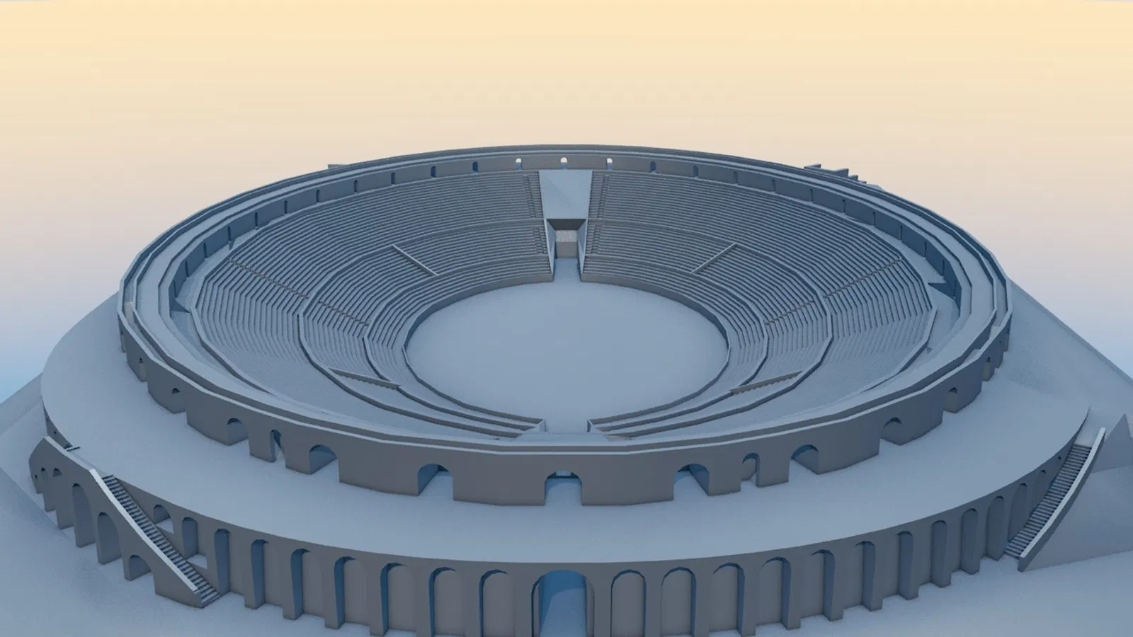 Bản sao chính xác Amphitheater of Pompeii với khu ghế khán giả chia 3 tầng (5, 12 và 18 bậc). Model tối ưu sẵn để đưa vào Unity hoặc các nền tảng phát triển/triển khai 3D khác.