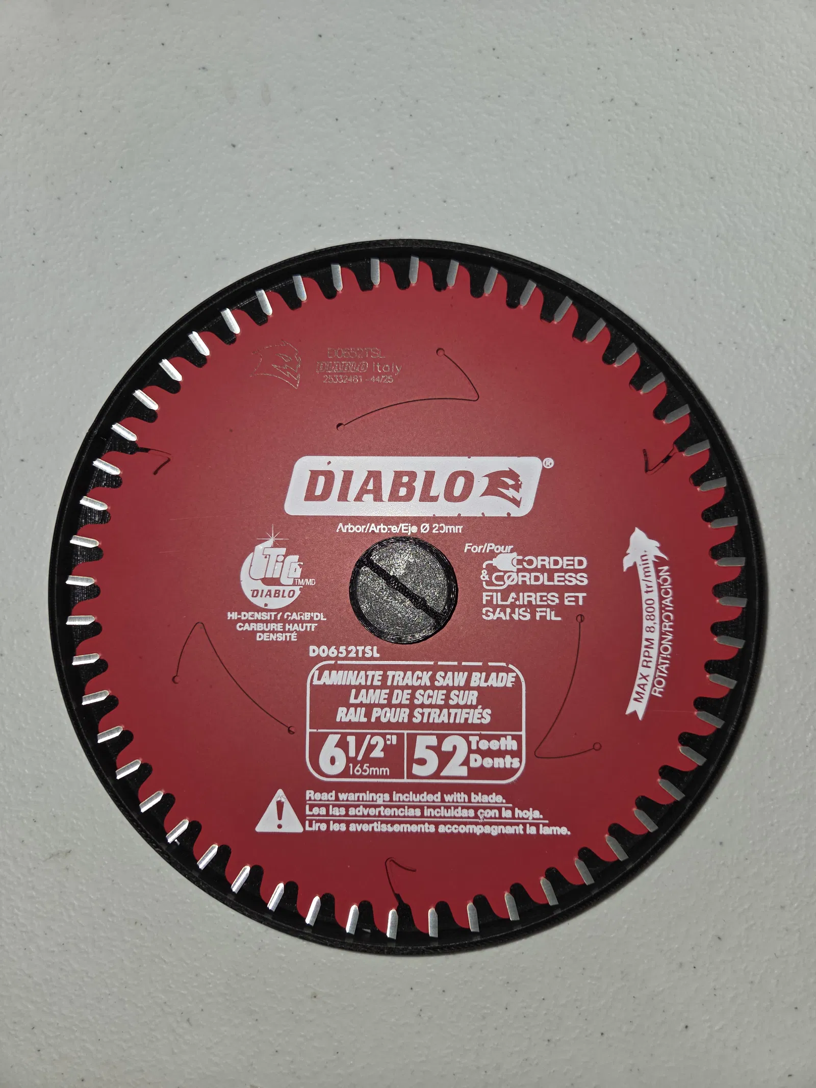 Hộp/Case đựng lưỡi Track Saw 6 1/2 inch, dùng cho lưỡi có lỗ tâm (arbor) 20mm. Thiết kế để chứa nhiều lưỡi, gọn gàng và bảo vệ lưỡi khi cất giữ hoặc mang đi.