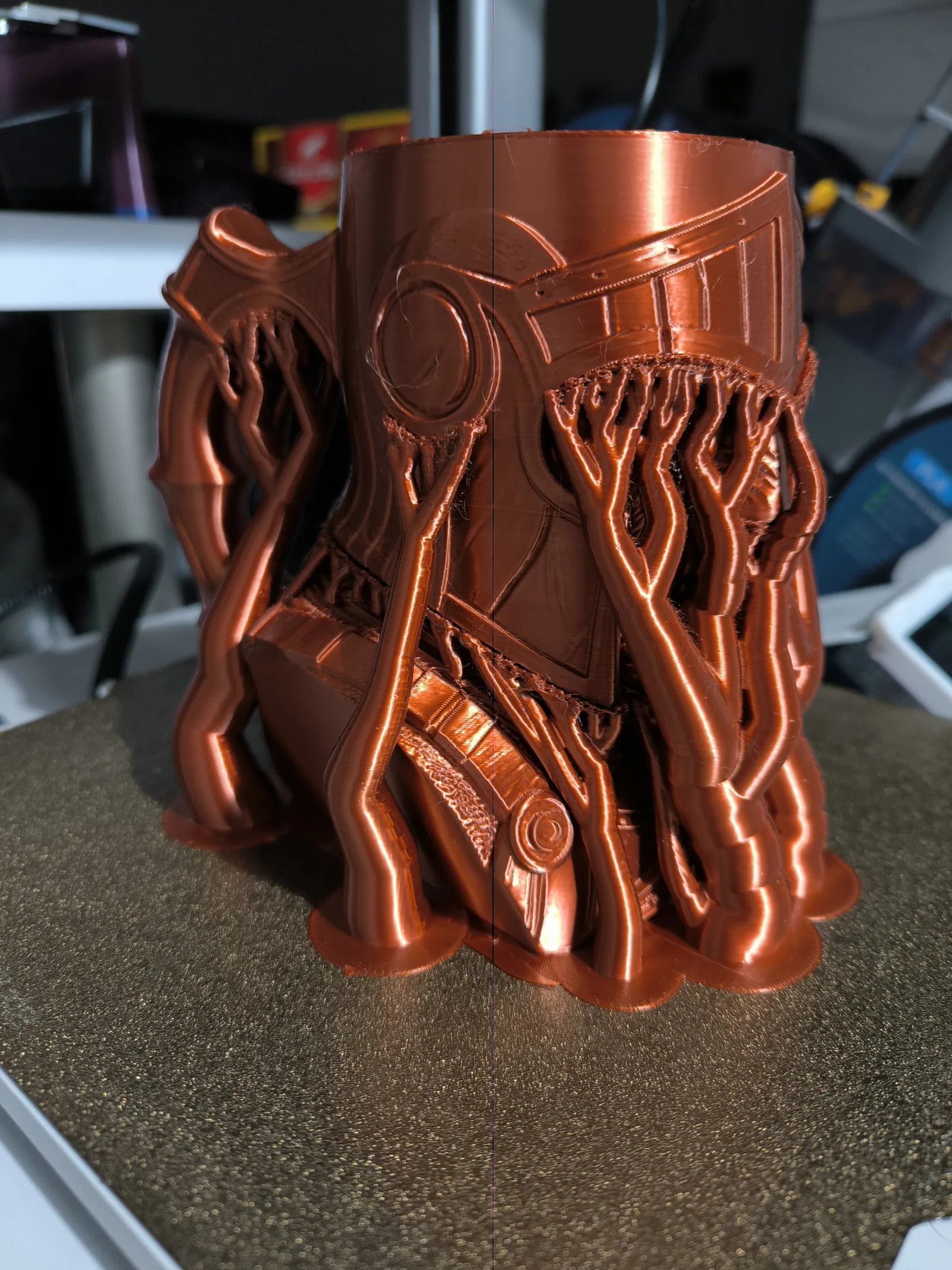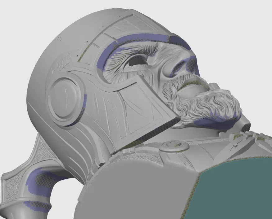 • Thiết lập in khuyến nghị: PLA, layer 0.2mm, 2 walls, 8% gyroid, brim, Automatic (28–30°) tree support, hỗ trợ cho phần mũ bảo hiểm được “tô” thủ công – xem hình bên dưới.