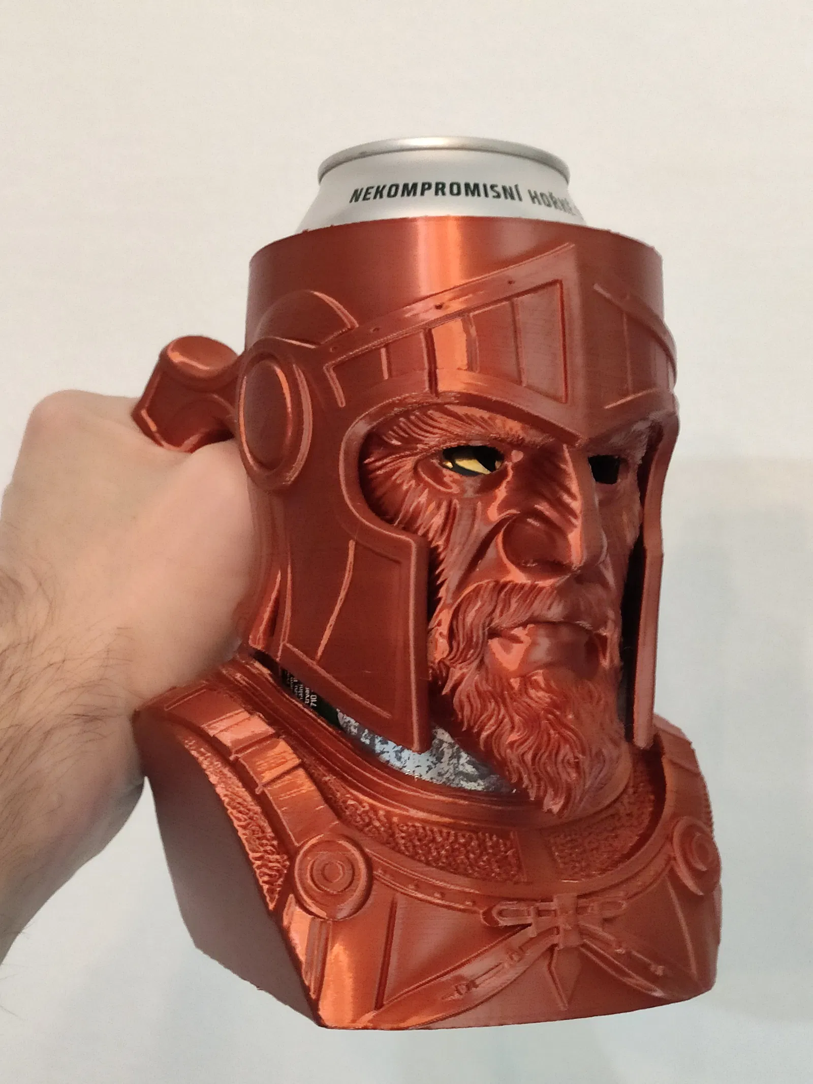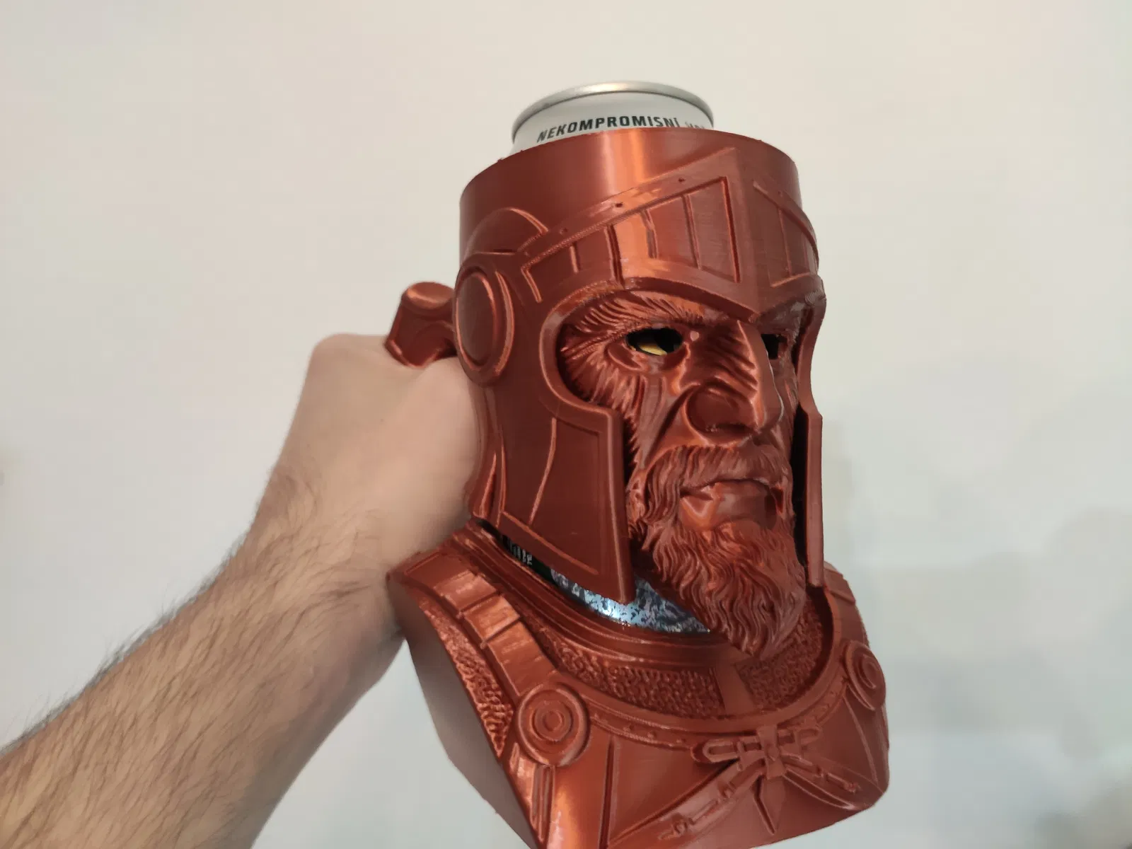 Tay cầm lon kiểu “Attic Veteran” cho lon EU 0.5L, kèm gợi ý insert cho lon 12oz hoặc 330ml slim. Khuyến nghị in PLA, layer 0.2mm, tree support và gỡ support thật cẩn thận để tránh hư mẫu.