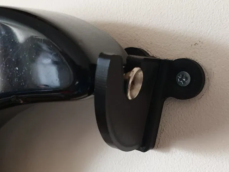 Móc treo tường đơn giản để treo guitar điện theo phương ngang. Thiết kế tối ưu cho strap button góc 45°, mỗi móc bắt 2 vít cho chắc. In 2 bộ cho 1 cây đàn (1 cái mirror), gồm 2 phần lắp khớp dễ in.