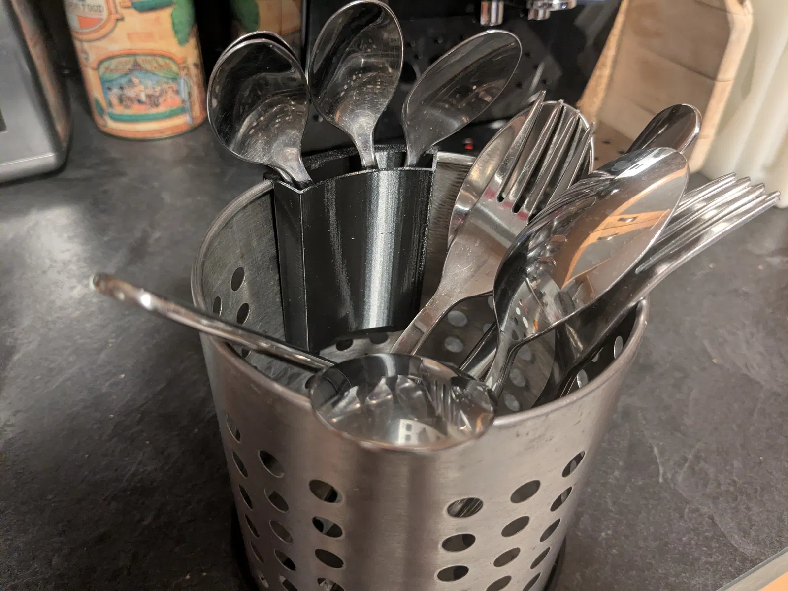 Giá để muỗng cà phê/trà cho Ikea ORDNING, giúp lấy các món cutlery ngắn nhanh và tiện hơn khi để trong ống đựng. Mẫu được in bằng PETG với nozzle 0.4mm.