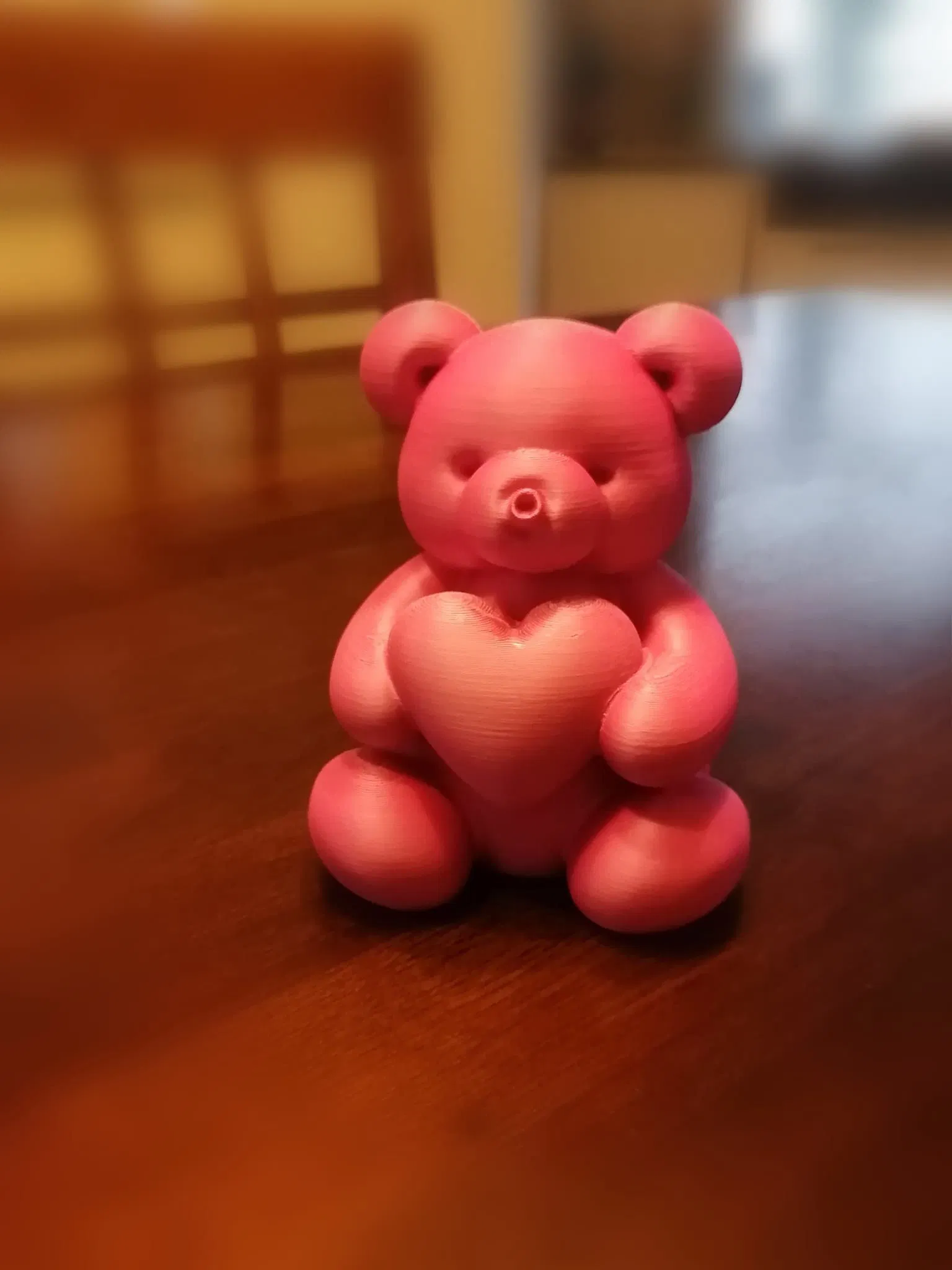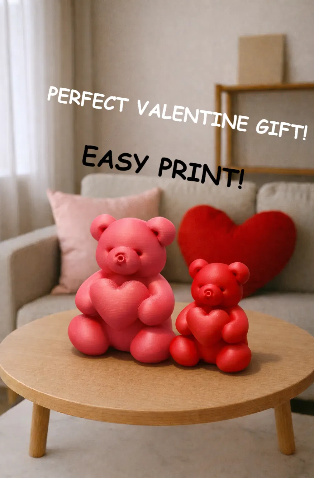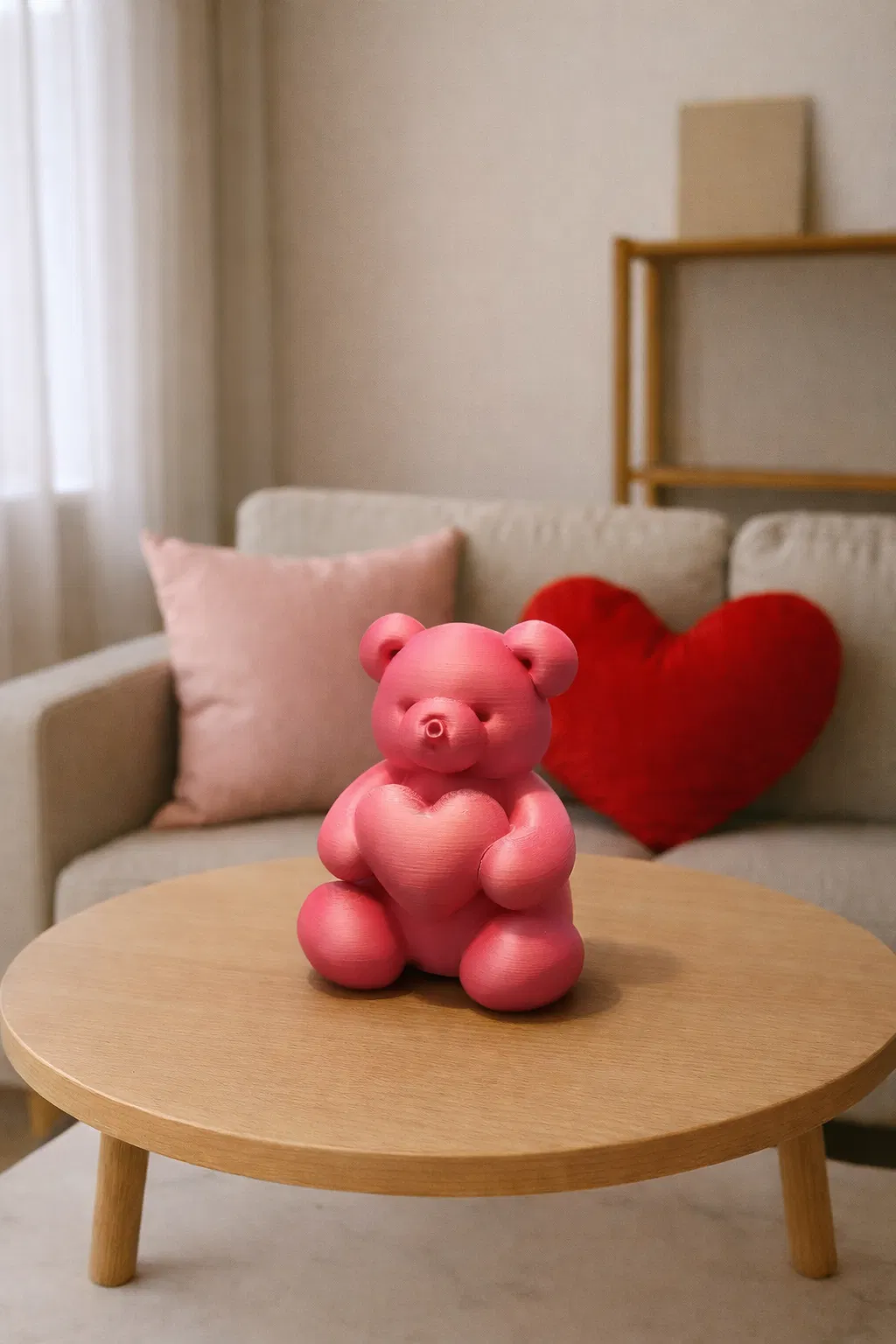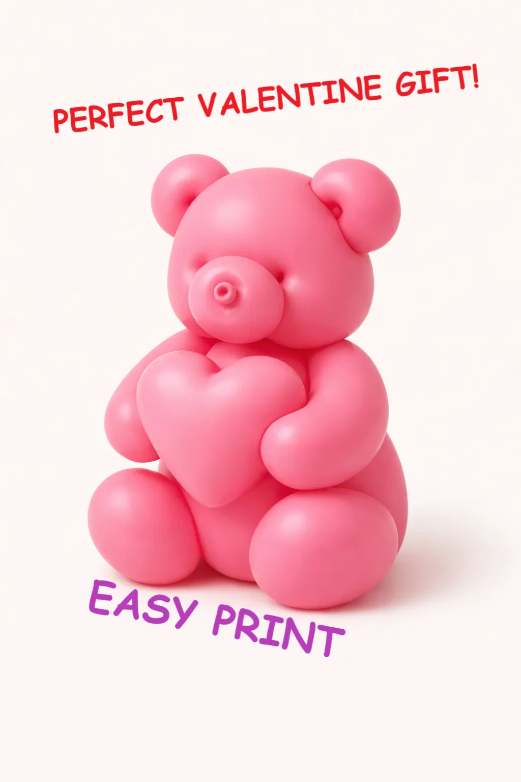 Mẫu gấu bóng bay cầm trái tim dễ thương, đậm vibe Valentine. Dáng bo tròn mượt, hợp để bàn/kệ hoặc làm quà tặng nhỏ. In 3D đẹp với PLA/PETG, mang lại cảm giác ngọt ngào và ấm cúng cho không gian.