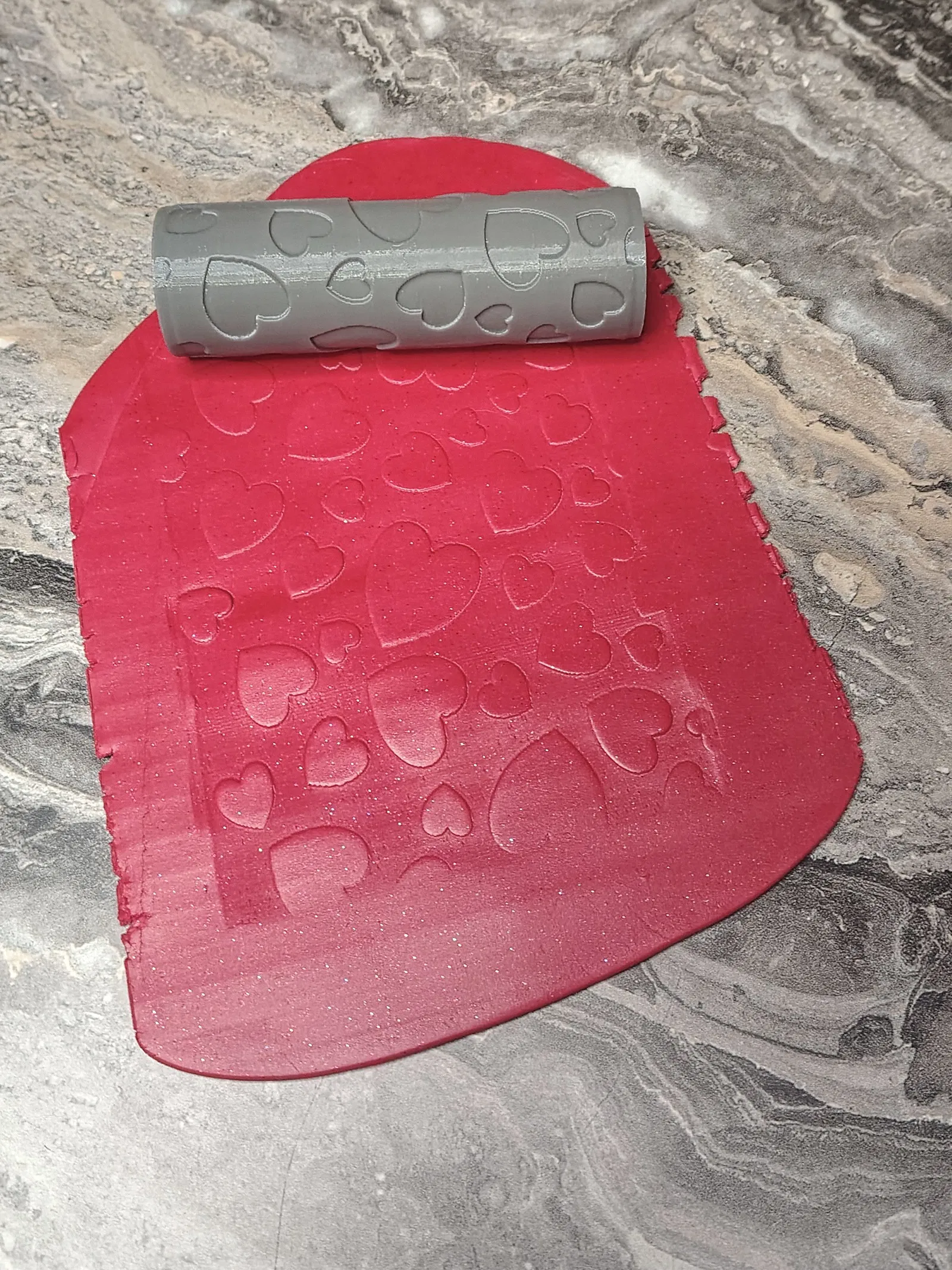 Con lăn textured roller có 2 biến thể họa tiết trái tim, dùng tốt cho polymer clay và các loại đất sét nặn khác. Họa tiết được thiết kế bằng graphic editor và dựng để in hoàn toàn trong Blender, vân nông cho texture nhẹ.