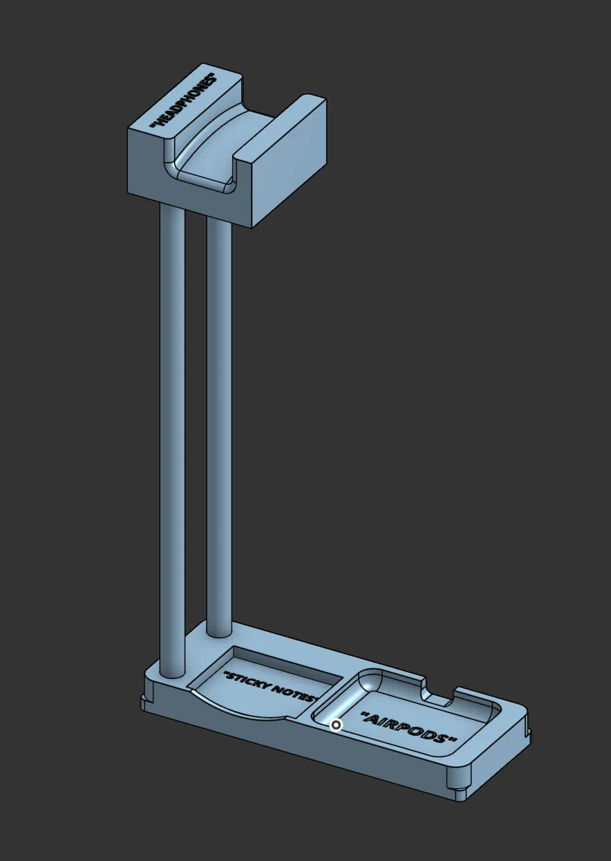 Mẫu này dùng để treo tai nghe over-ear, để vừa AirPods Pro thế hệ 2 và kèm chỗ đặt giấy ghi chú 2x1.5 inch. Khi in nhớ in đủ 2 cây rods để lắp ráp cho chắc chắn.