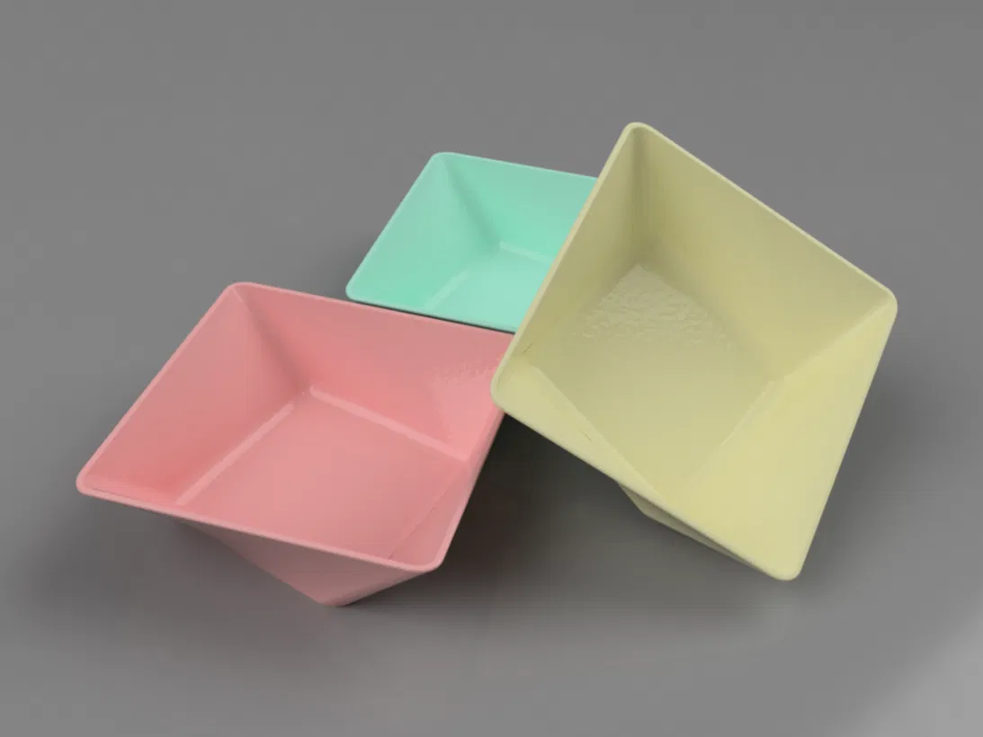 Slope Bowl nổi bật với dáng vuông gọn gàng và các mặt tường nghiêng, tạo cảm giác chuẩn chỉ và mang hơi hướng kiến trúc. Phần thu vào bên trong giúp tăng chiều sâu và tạo điểm nhấn thị giác, nhưng vẫn giữ được vẻ tối giản, nhẹ nhàng. Dùng làm vật trang trí, tô đựng đồ, hoặc điểm nhấn thiết kế đều hợp; đặt trong không gian nội thất hiện đại là ăn ngay. Hình khối rõ ràng và ngôn ngữ tạo hình tinh gọn giúp nhấn mạnh cấu trúc, sự cân bằng và tinh thần thiết kế đương đại.