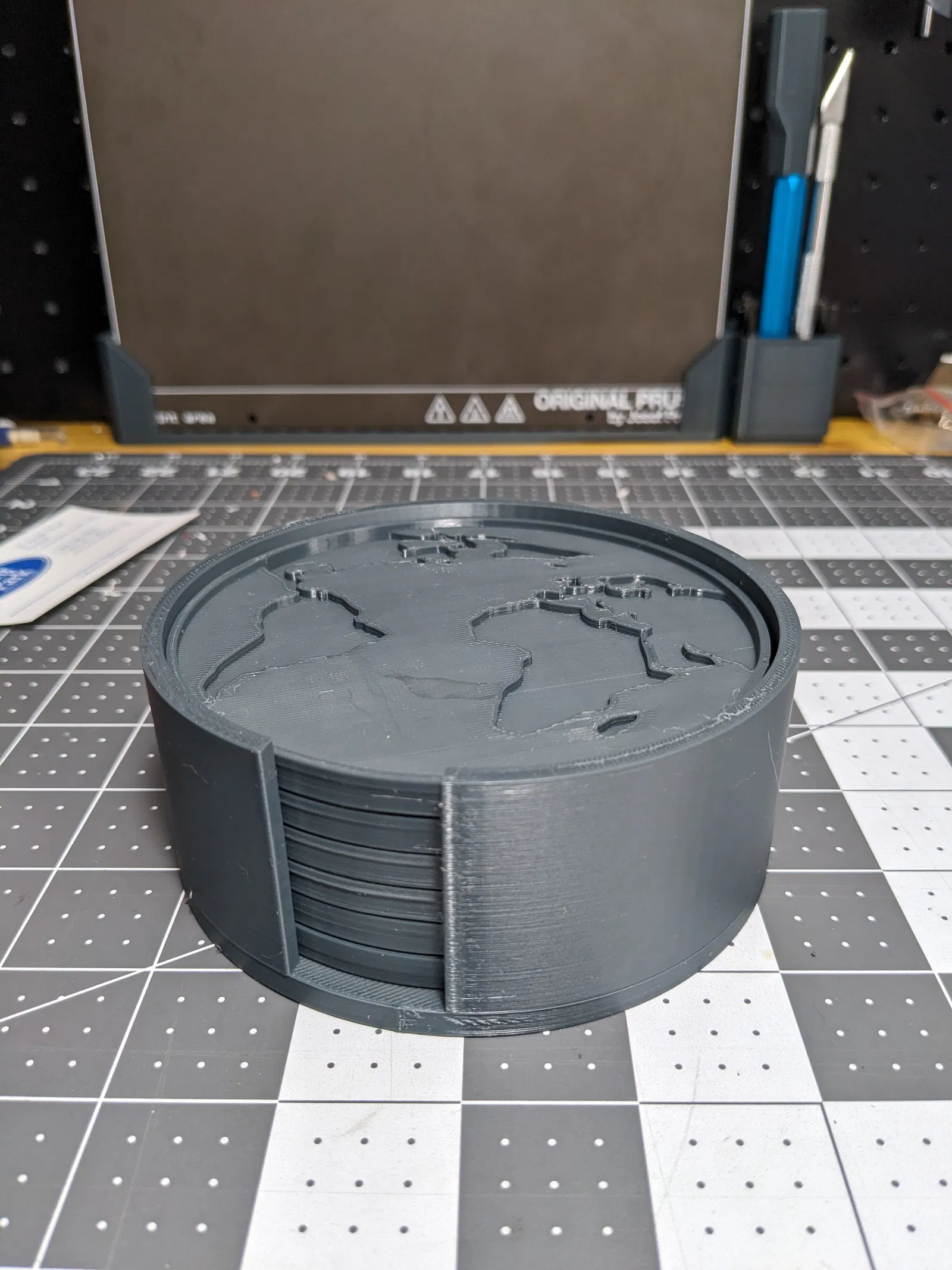 Thiết kế để đựng (6) cái Earth Coaster của mcko. Mình hết TPU nên chưa in cái chân chống trượt được.
